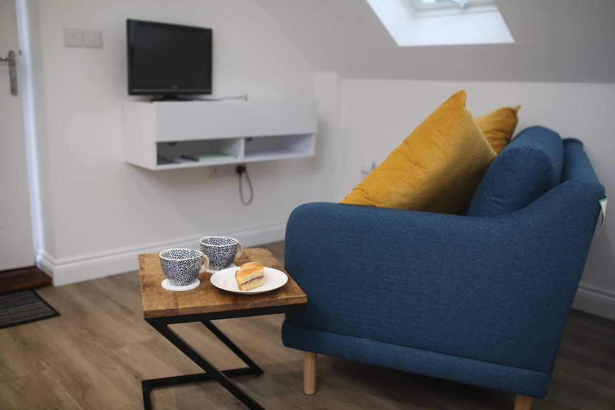 The entire apartment has been newly renovated, and enjoys wonderful views of the hills and mountains of Abergavenny. There is private parking and safe space inside to store bikes. There is a bedroom, living area, well-equipped kitchen and bathroom with a walk-in shower. This is the perfect base for exploring Abergavenny and the surrounding areas. This is a stylish but small space, perfect for two.