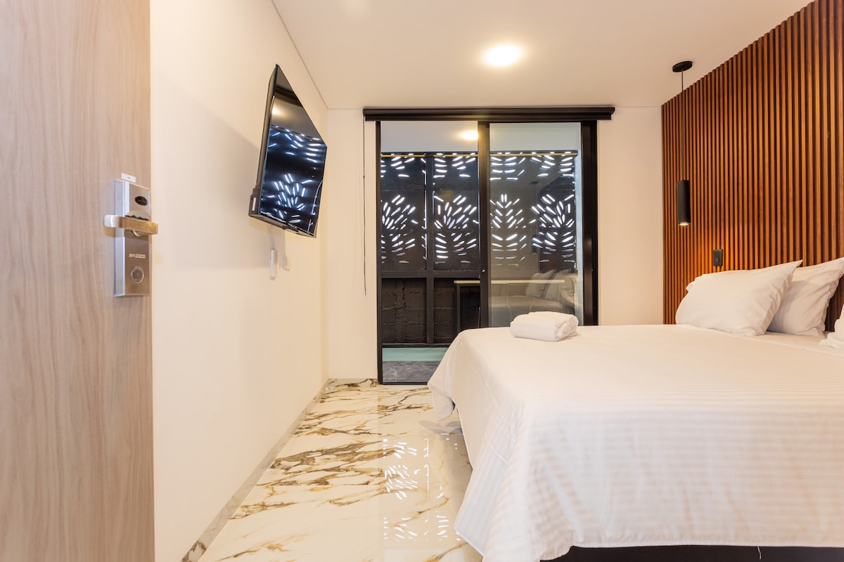 Şəhər mənzərəsi açılan özəl cakuzi, king ölçülü çarpayı, kondisioner və şəhərin nəfəs kəsici mənzərələri ilə bu eksklüziv studiyadan Medellinə tamaşa edin. Zəriflik, rahatlıq və canlı gecə həyatı üçün mükəmməl istirahət yeridir. El Poblado-da, Provenzanın restoranlarından, dam barlarından, kafelərindən və qalereyalarından bir neçə addımlıq məsafədə, Parque Lleras gecə həyatından bir neçə dəqiqəlik məsafədə yerləşir. Netflix, yüksək sürətli Wi-Fi iş sahəsi, mətbəx, paltaryuyan maşın/quruducu, idman zalı, sauna, hovuz və yerində barlar, restoranlar və qalereya ilə 54 düymlük smart TV-dən zövq alın.
