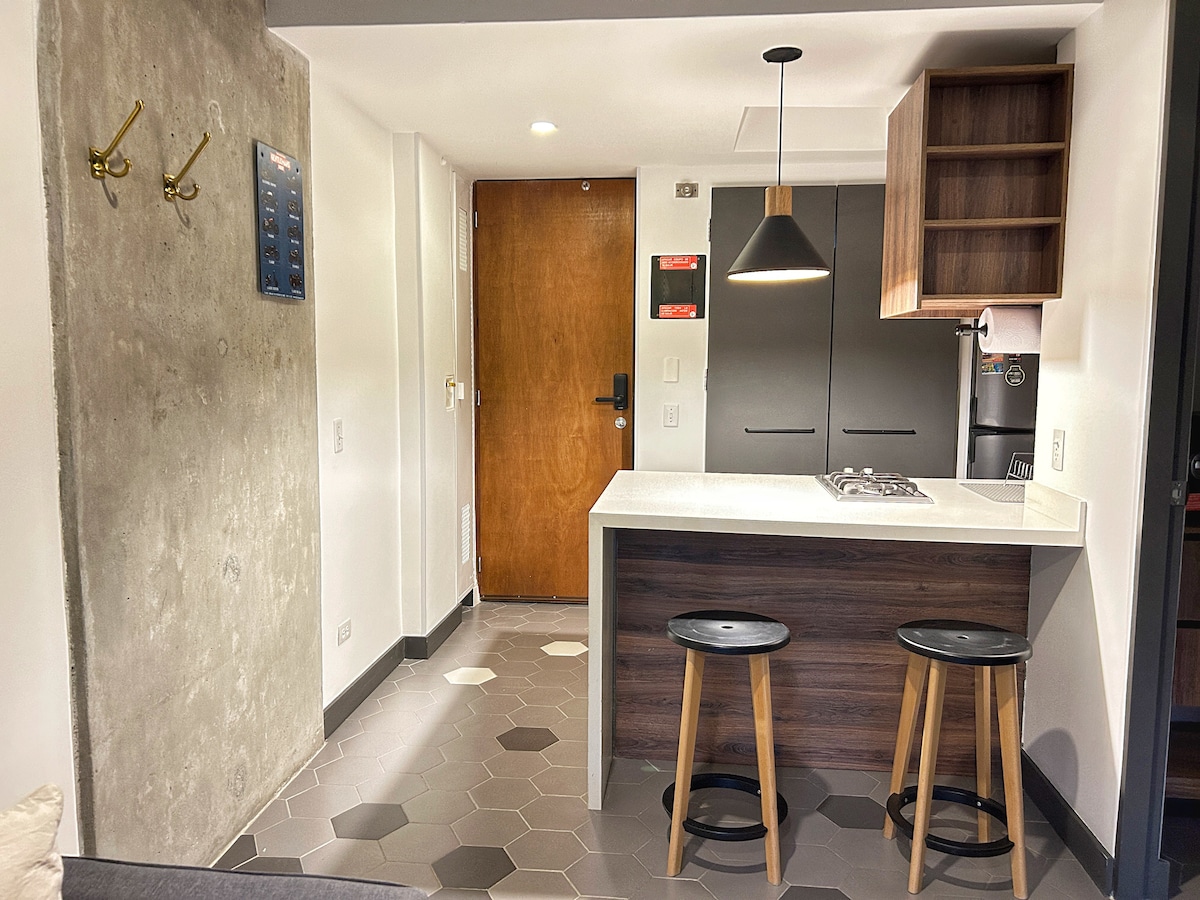 Hermoso y acogedor loft con aire acondicionado en la habitación y electrodomésticos esenciales para una estadía cómoda. Ubicado a pasos de restaurantes, bares, cafés y a 2 cuadras del Parque Lleras en una de las zonas más exclusivas y vibrantes de Medellín. Cuenta con 1 habitación con cama doble y sofá cama en la sala, con capacidad para 3 huéspedes Ingreso autónomo con caja de seguridad Perfecto para viajeros que buscan ubicación privilegiada, comodidad y una excelente experiencia en la ciudad.