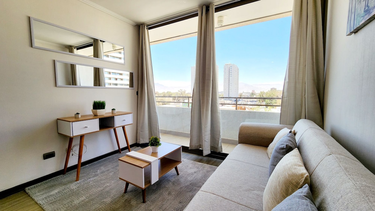 Moderno departamento con estacionamiento cerca al aeropuerto. Cómodo y seguro departamento en el 6º piso con ascensor, ideal para parejas, turistas o personas en faenas mineras. Ubicado en una avenida principal de Calama, con acceso rápido al aeropuerto, comercio cercano y vista al Parque Ecológico Loa. Incluye estacionamiento privado, Wi-Fi, cocina equipada y seguridad 24/7 en un condominio cerrado. Perfecto para descansar o explorar la ciudad. ¡Reserva y vive una experiencia única en Calama!