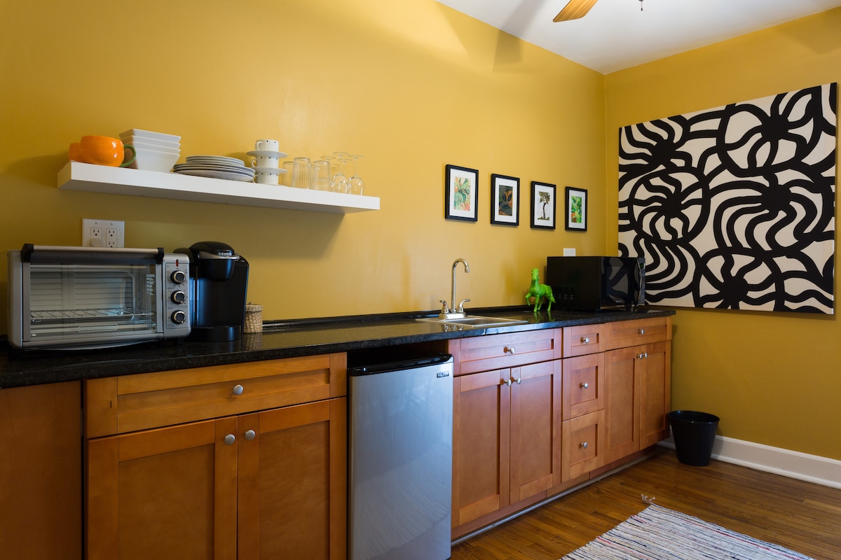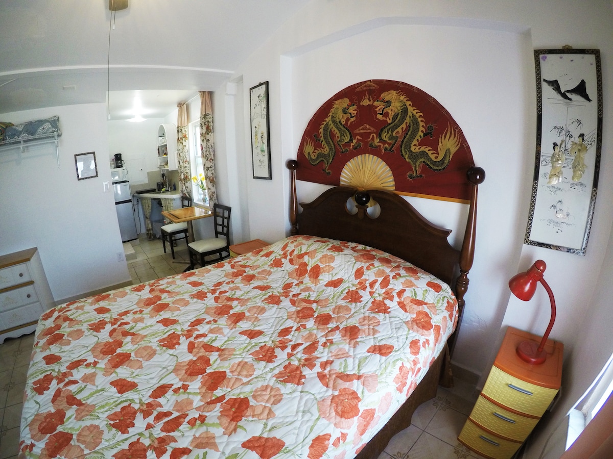 Bu sevimli və rahat studiya Mayaminin mərkəzindədir. Burada xüsusi giriş, lüks kraliça ölçülü döşək və yataq dəsti, uzanmış divan, masa və stulu olan iş sahəsi, ləvazimatları olan hamam-tualet və iki nəfərlik yemək masası var. Səhərlərinizə xüsusi toxunuş təmin etmək üçün parkinq, Wi-Fi, ağıllı televizor, mikrodalğalı soba, kiçik soyuducu, Hava fri, Qəhvə maşını Vt/ qəhvə və şəkər daxildir. Studiya Əsas Evə birləşdirilib. Mərkəzdə yerləşən bu Studiyadan hər şeyə asanlıqla giriş imkanından zövq alın.