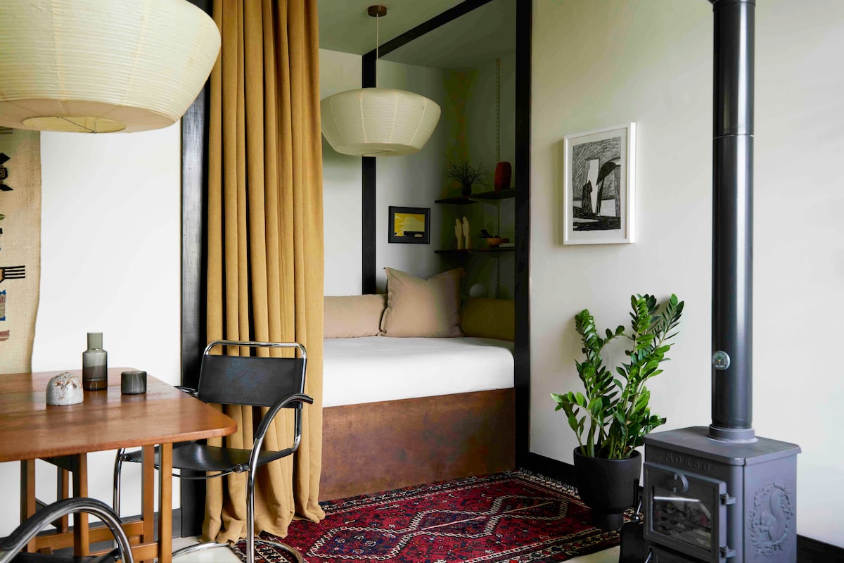Həm içəridə, həm də çöldə təmir edilmiş bu fərqli bina 1966-cı ildə ibtidai məktəb kimi fəaliyyətə başlayıb və modernist dizaynı bu ərazi üçün unikaldır. Qonaqlamanız zamanı incəsənət, üzüm mebeli, təbii tekstil və heyrətamiz mənzərələrlə əhatə olunacaqsınız. Studiya özünə məxsusdur və yüksək keyfiyyətli mətbəx və süfrə ləvazimatları ilə kiçik, lakin funksional mətbəxlə təchiz olunub. Yapon ilhamlı vanna otağı böyük bir yağış duşu və dərin bir vanna ilə vaxt keçirmək və istirahət etmək üçün hazırlanmışdır.