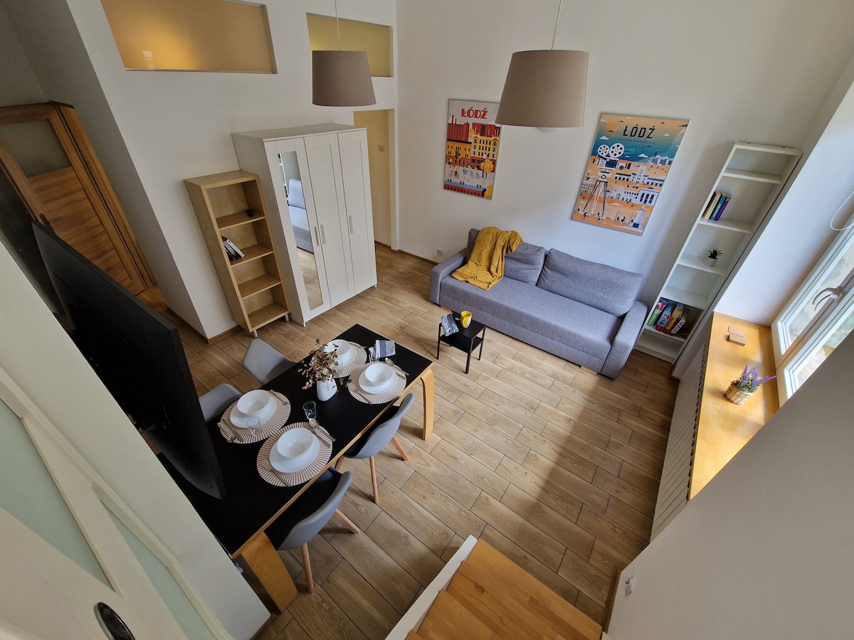 Pomorska 82 mərkəzində 4 nəfərlik ikimərtəbəli, səmimi mənzildir; yüksək mərtəbədə hündür tavanlı, hündür tavanlı yaşayış evində yerləşir, pilləkəndən iki giriş və pulsuz parkinq yerləri mövcuddur. Yaxınlıqda: Teatr Wielki, Filarmoniya, Teatrlar, Piotrkowska, Azadlıq Meydanı, velosiped stansiyası, avtobus və tramvay dayanacaqları. Yaxınlıqda 3 restoran: məşhur olan Sznycelek, şam yeməyindən sonra xardal, Pizzeria, mağazalar və s.