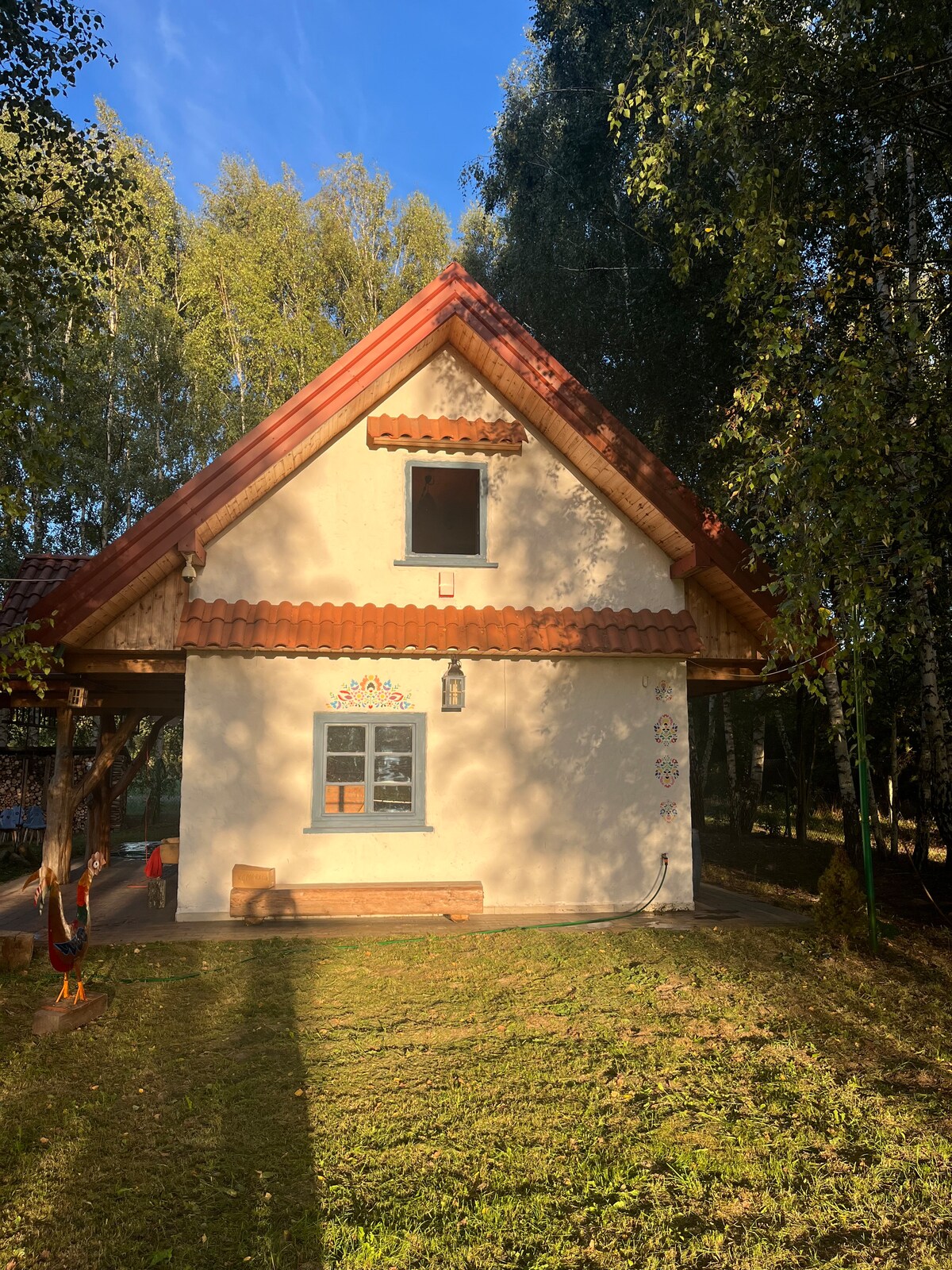 Sizi zamanın daha yavaş axdığı və təbiətin sülh və sakitləşdiyi sehrli bir guşəyə dəvət edirik. Evimiz şəhərin səs-küyündən uzaqlaşmaq və əsl Polşa kəndinin dolğun atmosferinə qərq olmaq istəyənlər üçün mükəmməl bir yerdir. Meşənin genişliklərinin düz yanında yerləşən bu məkan təbiətlə unikal təmas təklif edir – quşların oxuması arasında səhər gəzintiləri, buxarı ilə axşamlar və başqa heç bir yerdə tapa bilməyəcəyiniz təmiz hava qoxusu.