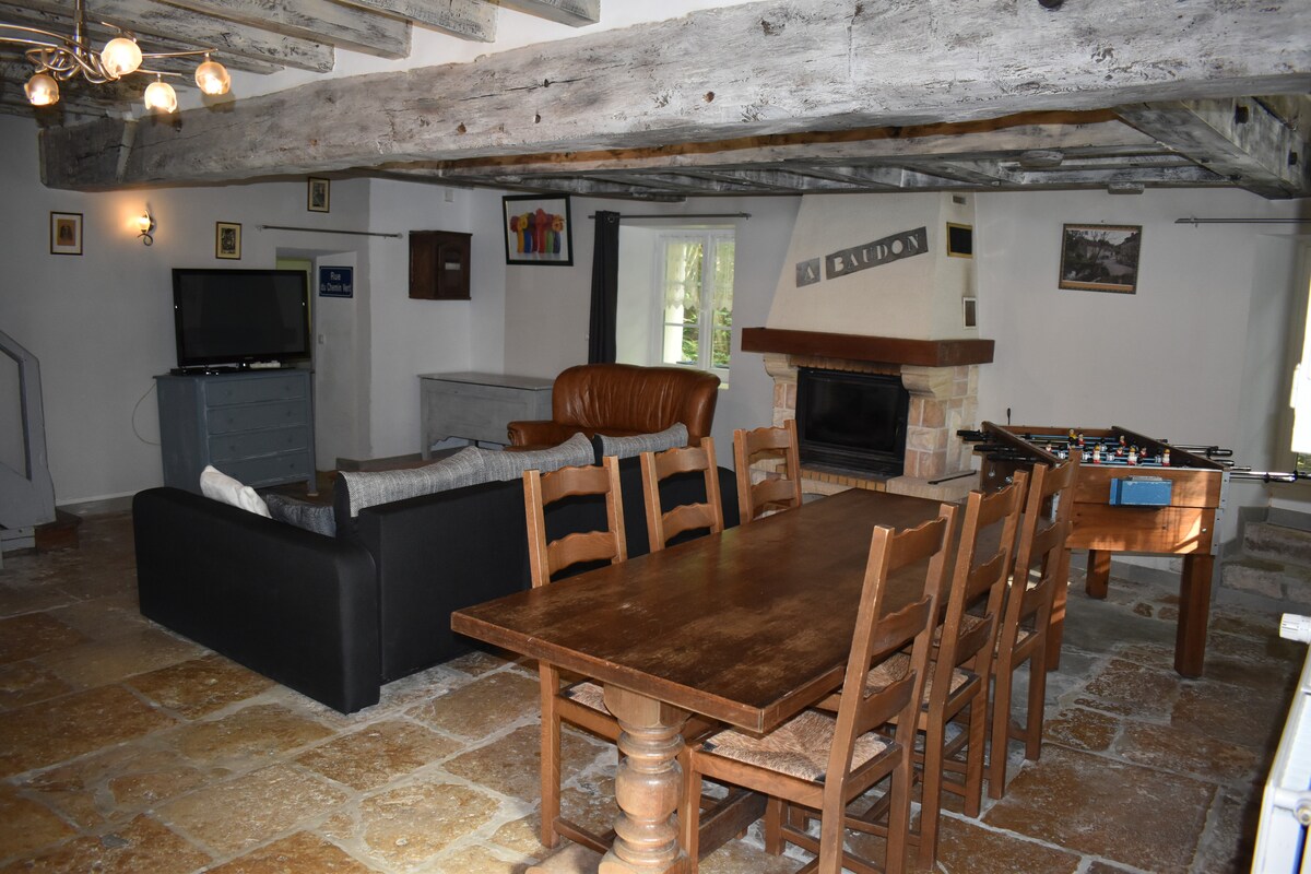 Essonne və GR32 tərəfindən köhnə dəyirman, birinci mərtəbədə: qonaq/yemək otağı, böyük mətbəx, vanna otağı və yataq otağı (1 çarpayı 140 sm), 2 birnəfərlik çarpayısı olan yataq otağı, bir nəfərlik çarpayısı olan başqa bir kiçik yataq otağı. Yuxarı: 160 sm çarpayısı olan bir yataq otağı, 2 90 sm çarpayısı olan başqa bir yataq otağı, 1 duş otağı və 1 ayrı tualet. Böyük bağça, stul və masalar.