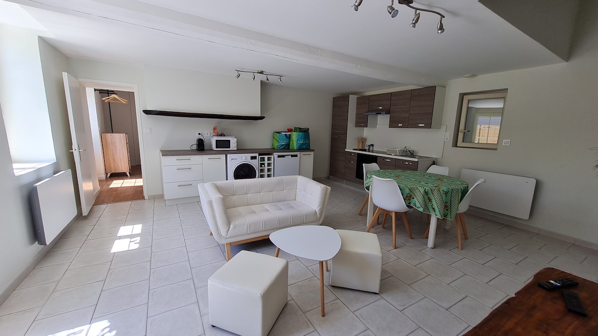 Cütlük kimi dincəlməyə ehtiyacınız var? Bu halda Stud & Spa sizin üçündür! İstənilən hava şəraitində zövq almaq üçün istilik və kondisioner sistemi olan verandada əsl Spa, gözəl mebellərlə təchiz olunmuş studiya və bağ mebelləri olan ayrıca veranda. Yataq dəsti, tualet və hamam daxildir. Sabun, şampun və qabyuyan sabun mövcuddur. Yaşayış yeri şəhər mərkəzindən 3 km və Luardan 1 km məsafədə yerləşir. 2 tramvay dayanacağı sizi 10 dəqiqəyə hipermərkəzə aparacaq!