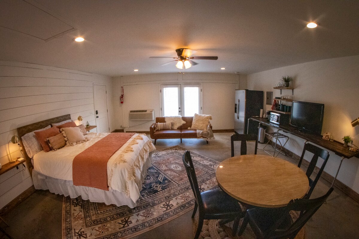 2 avtomobillik qarajımızın üstündəki valehedici studiya mənzili. Biz Joplin şəhərinin ən təhlükəsiz məhəllələrindən biri olan mənzərəli Roanoke məhəlləsində yerləşirik. Böyük ağaclar, xarakterlər və gözəl tarixi evlər. Hər iki xəstəxanaya 5 mil məsafədəyik və tarixi şəhər mərkəzi Joplin və Ozark Xristian Kollecinə piyada məsafə qət edirik. Təzə, yeni məkanda ayrıca giriş və füsunkar dekorasiya.