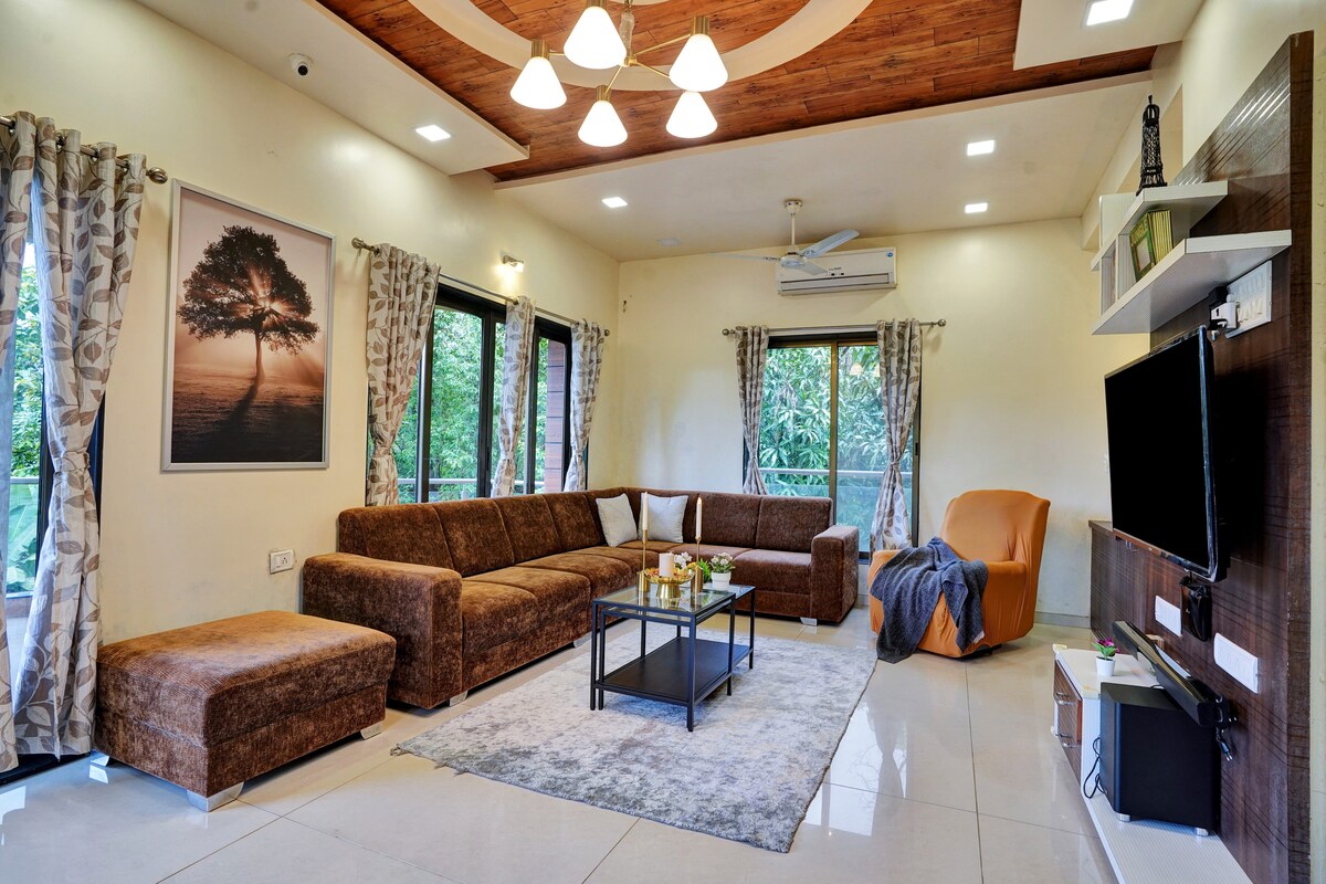 Lonavaladakı premium dəbdəbəli BNB-imizə qaçışınızı artırın! Müasir şəraiti, gözəl yataq otaqları, ayrıca hovuzu, mənzərəli mənzərələri, ağıllı TV, Wi-Fi, aşpaz xidməti, Barbekü, Düşərgə yanğını, qapalı oyunlar, EV avtomobil şarjı və daha çoxu olan 3bhk villadan zövq alın. Təbiət qoynunda sakit tətil və ya dəbli istirahət üçün mükəmməldir. Yamyaşıl ətrafı və bütün zəruri ehtiyacları olan dostlarınız və ailənizlə xatirələr yaradın və yemək planımıza nəzər salmaq üçün darıxırsınızsa. PS: Zomato, Blinkit və Swiggy mövcuddur