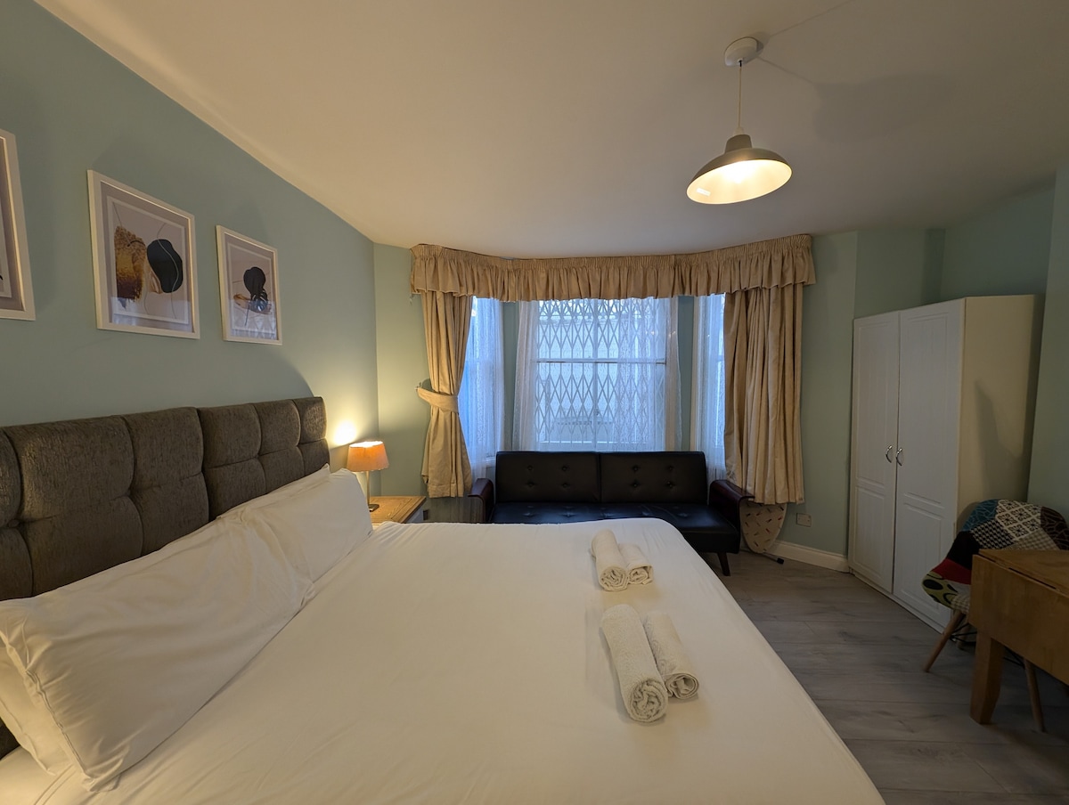 Londonda rahat və rahatlıq təmin edən, yaxşı təchiz olunmuş, aşağı mərtəbədə yerləşən studiya tipli mənzil. Burada Smart TV, pulsuz Wi-Fi və rahat qonaqlamanız üçün lazım olan bütün vacib imkanlar var. Mənzildə duş kabini və ayrıca vanna otağı, soba, dörd plitə, tezgahın altına yerləşdirilmiş soyuducu-dondurucu və paltaryuyan-paltaryuyan qurğusu olan tam ölçülü mətbəx var. Həm qısamüddətli, həm də uzunmüddətli qonaqlamalar üçün idealdır.