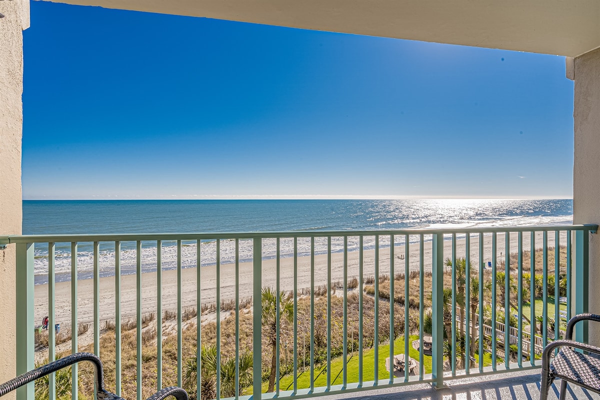 Wake up oceanfront in this 11th-floor king studio at Caravelle Resort on Myrtle Beach’s Golden Mile. Designed for couples who want easy beach access without extra space, Simply SUNsational features a king bed, a well-equipped kitchen, and a private balcony overlooking the Atlantic Ocean for morning coffee or evening views. Enjoy all our resort amenities and see why this condo continues to be a couple's favorite.