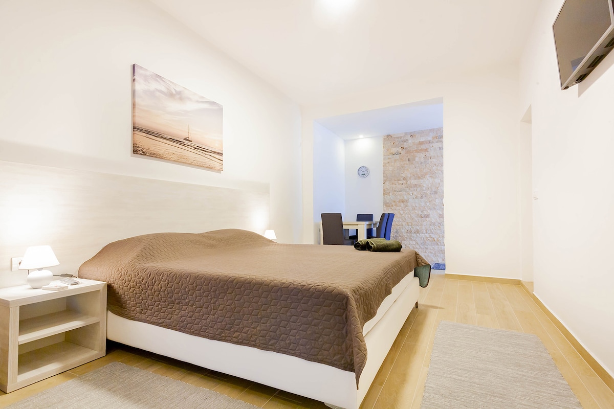 Ən uzun 14 km-lik Monteneqro çimərliyi yaxınlığında yerləşən Ulcinj şəhərinin füsunkar sahil şəhərində gözəl Mediteranean tətilini yaşayın. İzdihamdan və səs-küydən uzaq, lakin mərkəzdən və hər şey ayaqla yalnız bir minuites, restoran, çimərliklər, klublar, musuem.. -Qonaqları oyatmaq üçün balkondan gözəl studiya (balkon + Yay Mətbəxi) + sakitləşdirici dəniz mənzərəsi!