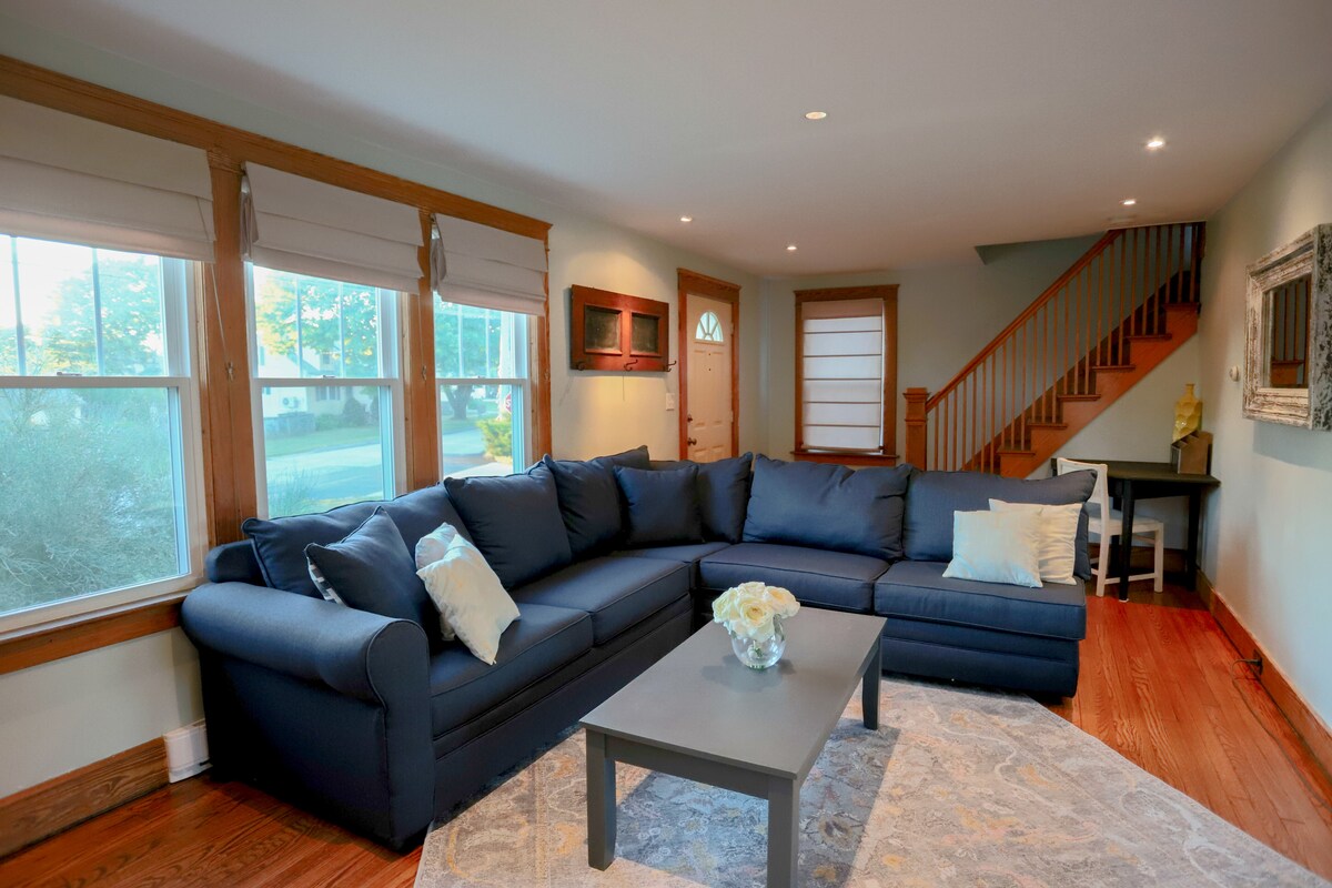 Relax and enjoy a peaceful stay that is a 3 block walk to one of the most beautiful ocean beaches in the Hamptons! This apartment is located in a beautiful, wooded, quiet neighborhood. Town is 1.5 miles away. This apartment has an open concept living space with a fully equipped kitchen. There are 2 cozy bedrooms and one bath with a walk in shower. We prefer families and mature adults. We supply beach towels, chairs, umbrella and beach wagon.