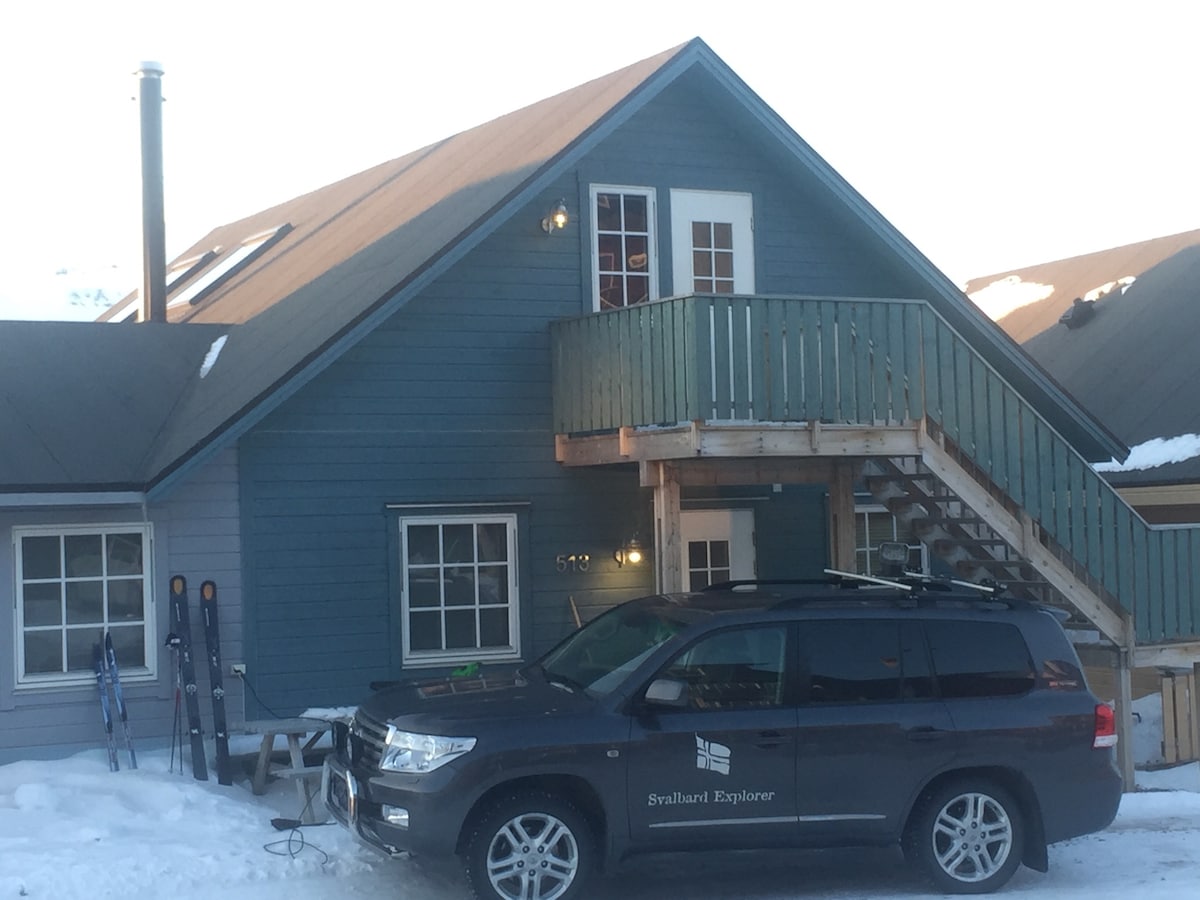 Tipik yaşayış yerində yerləşən, şəhər mərkəzindən cəmi 3 dəqiqəlik məsafədə yerləşən, kulturhuset, supermarket, restoran, kafe və mağazaları olan rahat yerüstü mənzil. 2 nəfərlik gözəl ev (maksimum 3 nəfər). 2 rahat döşəyi olan 160x200 sm ölçülü çarpayı; Svalbarda adətən bir tərəfdən daxil olmaq mümkün olan çarpayı nişanına yerləşdirilir. Qonaq otağında divan çarpayı. Televizor yoxdur, lakin yaxşı Wi-Fi var. Maraqlı bir gün Svalbard-ı araşdırdıqdan sonra evdə yemək bişirmək və nahar etmək üçün yaxşı təchiz olunmuş mətbəx. Uzunmüddətli seçimlər mövcuddur.