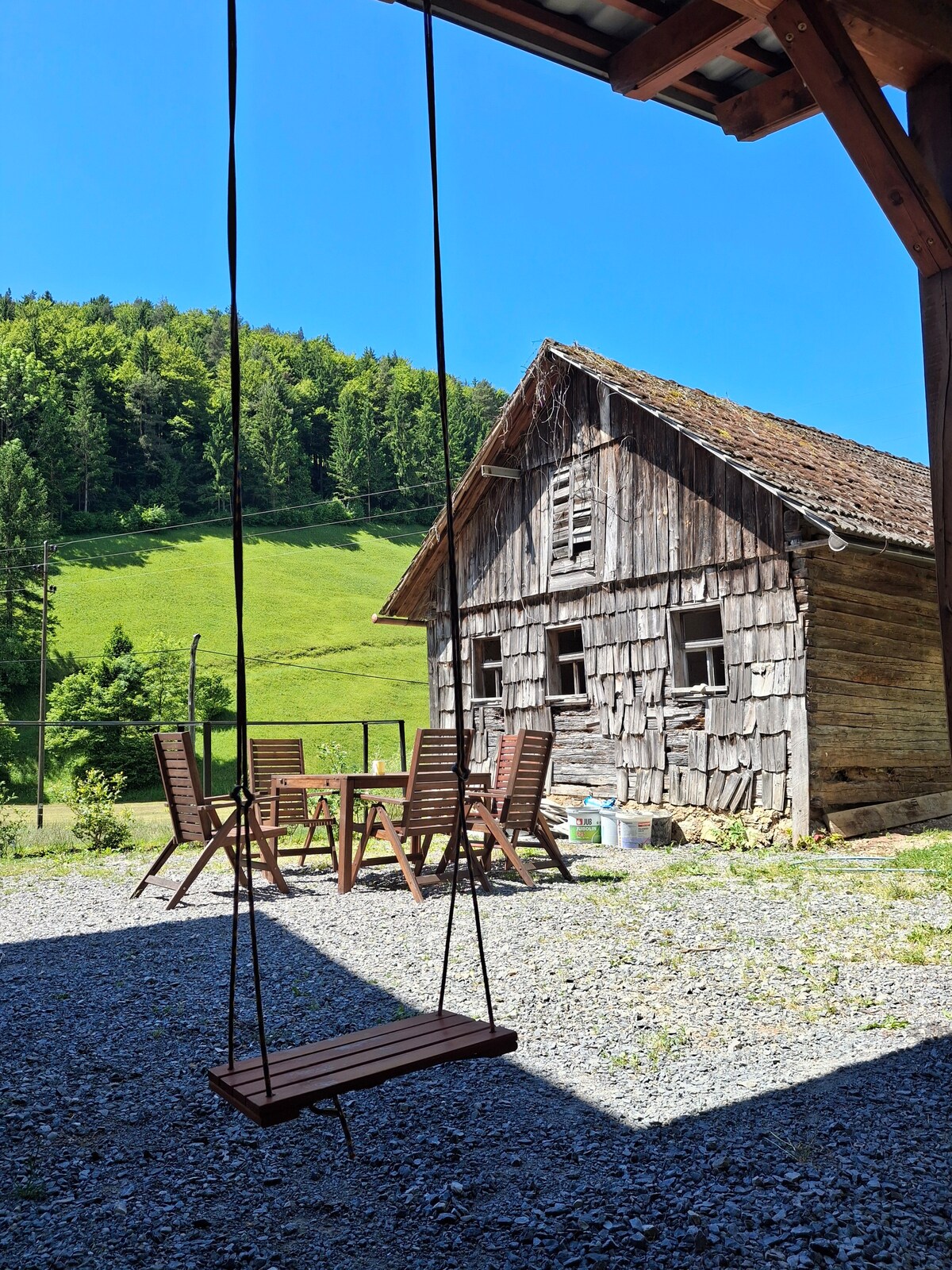 The apartment is located in a separate building in the yard of a secluded farm in the unspoiled nature of Pohorje. From the village of Mislinja, you ascend slightly to the homestead along a 1 km private macadam road. In the surrounding area you can walk through the mighty Pohorje forests and plains, cycle along countless forest roads and paths, climb in the nearby granite climbing area, explore the karst caves Hude luknje or relax in the local natural pool.