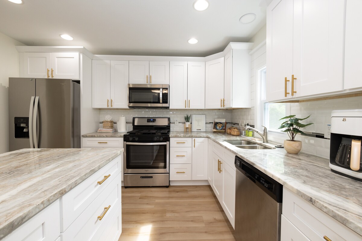 Daxil olun və bu evin interyer dizayn üslubunu mənimsəyin. Bu iqamətgahda tünd taxta döşəmə və memarlıq ağacı şüaları, köntöy və qəşəng estetikanın qarışığı nümayiş etdirilir. Səhər yeməyi təklif edən barın yerləşdiyi mətbəxin ətrafında iki böyük yaşayış sahəsi olan açıq döşəmə planı var. Açıq məkanda barbekü qrili və çoxlu oturma və açıq havada yemək ilə yanan çanaq var. Uşaqlar üçün yelləncək dəsti və qum qutusu var. Çox mehriban ailədir. Yatmaq üçün üç böyük yataq otağı var. Altı yaşdan yuxarı qrupların 2 əkiz və bir 150-179 sm ölçülü hava döşəyi, eləcə də 2 böyük ölçülü divan mövcuddur. Evim yüksək səviyyəli otelin bütün imkanları ilə tamamilə yenilənir. Mənzərəli arxa həyətdən zövq almaq üçün yüksək sürətli internet, propan manqal, yanğın çuxuru və masa və stulları olan gözəl veranda var . Bütün yataq otaqlarında düz ekran televizorlar var və ailə otağı 70 düymlük "Hi Def TV" ilə təchiz olunub. Biz çox ailəyik və kiçikləriniz üçün beşik, paket n play, yüksək kreslo və ya oyuncaqlar təmin edə bilərik. Böyük arxa həyətdə yelləncək dəsti, oyun evi və qum qutusu da var. Bu, həqiqətən, evdən uzaq bir evdir. Qonaqların bir şkaf və bir şkaf istisna olmaqla, evə tam çıxışı olacaq. Mən çox yaxınam. İstədiyiniz qədər az və ya çox ünsiyyətdə ola bilərik. Əmlak sakit, mehriban məhəllədə qurulub. Hər əsas sərbəst yürüşdən 10 dəqiqə, hava limanına 5 dəqiqə, şəhərin mərkəzinə 15 dəqiqə və Klivlend Klinikasına cəmi 20 dəqiqə məsafədə yerləşir. Berea iki Göldən ibarətdir. Coe Lake böyük bir oyun meydançası, amfiteatr, gəzinti yolları, icma hovuzu və qrilləri olan pavilyon təklif edir. Yolun aşağısında Uolles gölündə çimərlik zonası və velosiped yolları olan şəlalə var. Burada möhtəşəm yerli restoranlar da fəaliyyət göstərir. Bu yer avtobus dayanacağının 1 milliyində və qatar sisteminə 5 dəqiqəlik məsafədədir. Evimdə üç yataq otağı var və altı nəfər yatacaq üç kraliça çarpayısı var. Daha üç nəfəri rahatlıqla yerləşdirəcək iki seksiyalı divan da var. İstifadə üçün hava döşəkləri də mövcuddur.