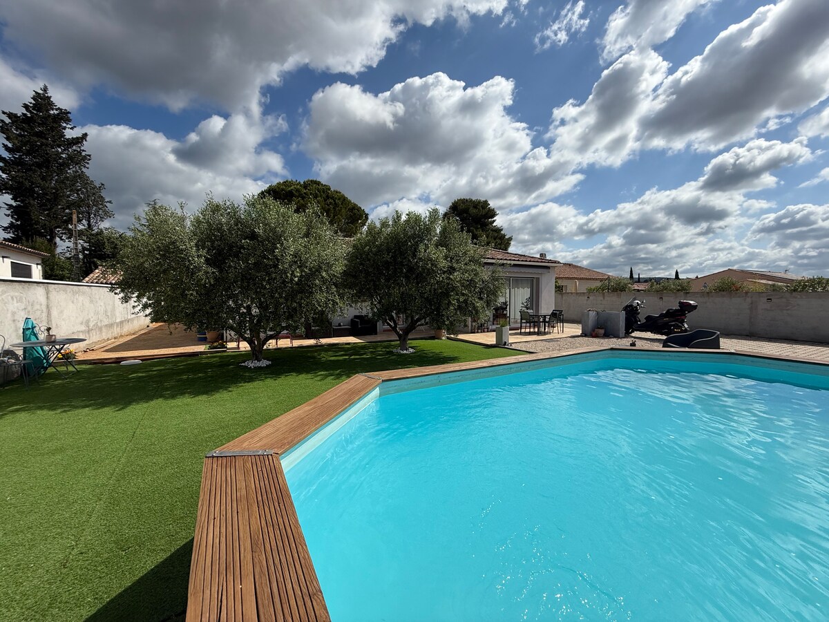 2023-cü ildən 116m2 olan, üzgüçülük hovuzu və pétanque meydançası olan gözəl son villa. Qonaq otağı və müasir təchiz olunmuş açıq mətbəxi olan villa, paltardəyişmə otağı və duş otağı olan 33m2 əsas süita daxil olmaqla 3 yataq otağı. Hər biri 13m2 olmaqla 2 yataq otağı. vanna və duşu olan hamam otağı. Yataq düzülüşləri: - əsas süita: ikinəfərlik çarpayı (180) -2-ci yataq otağı: ikinəfərlik çarpayı (160) -3-cü yataq otağı: ikinəfərlik çarpayı (160) -uşaq otağı - Divan çarpayı Siqaret çəkməyən ev. Ev heyvanlarına icazə verilmir