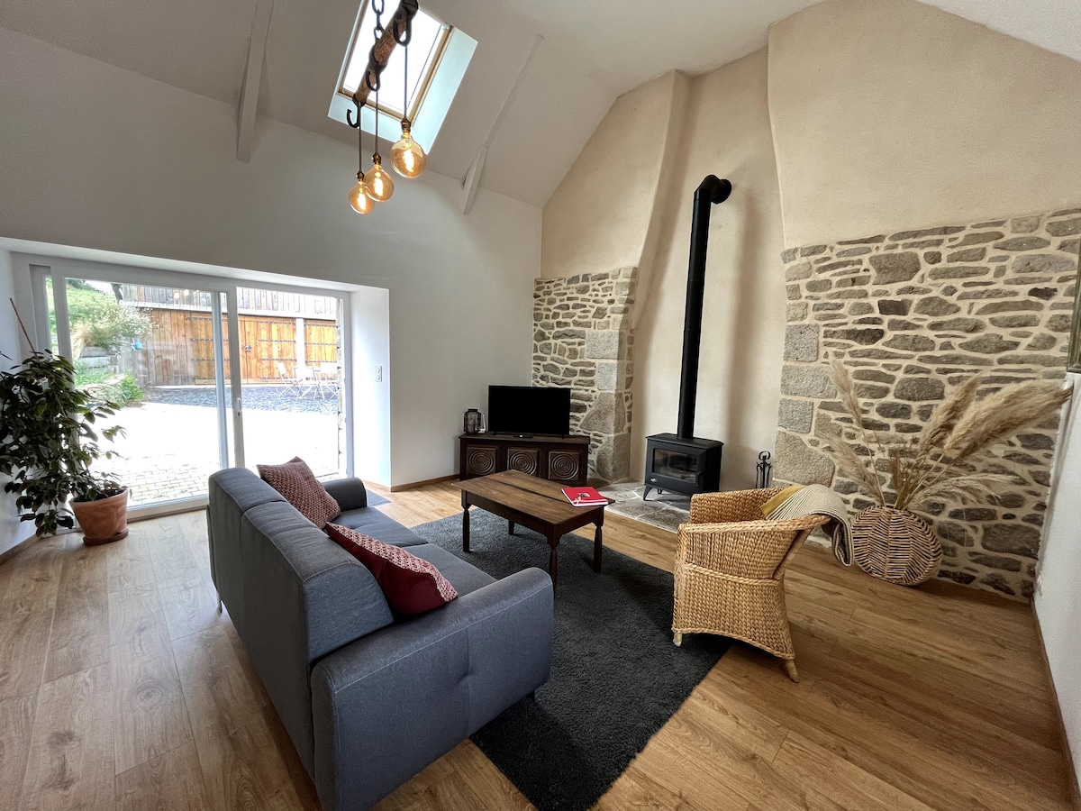 Dépendance de longère du XIX tout juste rénovée et transformée en maison indépendante. Un style unique au cœur d'un écrin de verdure ,parfait pour une retraite en pleine nature . Petit jardin privatif et accès commun grand jardin avec animaux de la ferme et potager. Le tout situé dans un hameau calme. A 5 min des commerces alimentaires , restaurants et crêperies A 25min des plages en voiture. Circuits de randonnée aux alentours . Zoo et golf sur la commune voisine . A 25 min de Lorient.