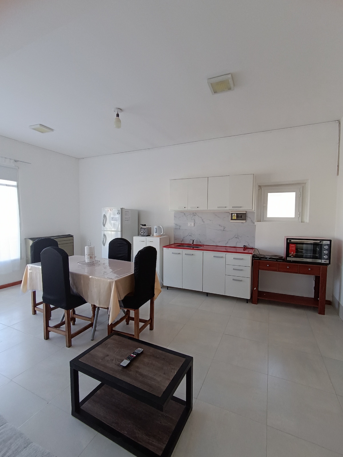 Departamento amplio apto para matrimonio y/o 3 huéspedes adultos, ya que cuenta con un sofa cama en el living. Cocina y utensilios listos para cocinar A media cuadra de la avenida central Excelente iluminación Cuenta con lo esencial para preparar su desayuno (té, cafe, azúcar, etc)