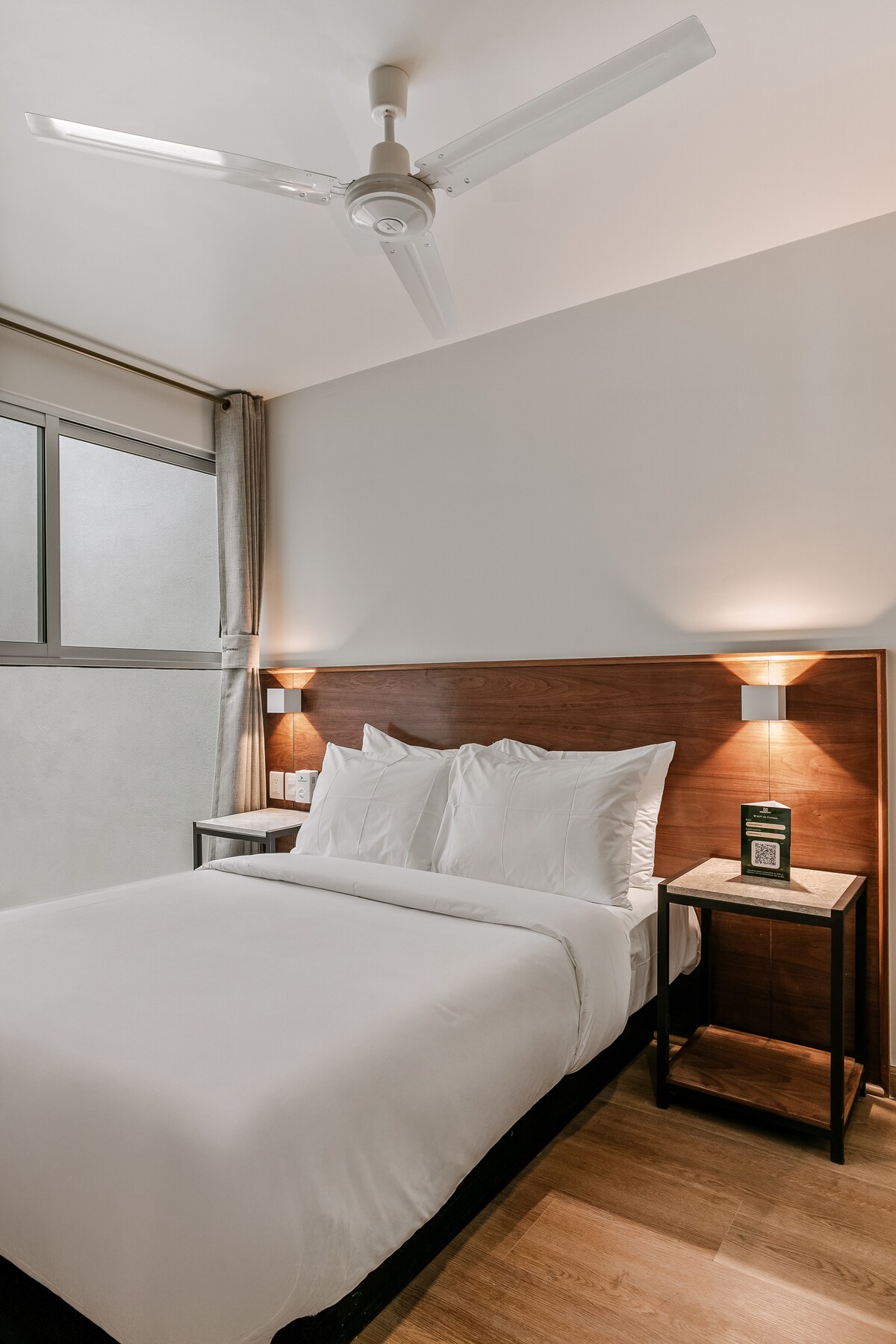 La suite esta equipada para brindar el mayor confort. Descanse en su cama con colchón memory foam mientras ve una película en la smart TV, WIFI alta velocidad. Disfrute de un buen baño en una regadera con acabados de alta calidad. Trabaje sin preocupaciones en el escritorio contamos con wifi de alta velocidad. Prepare comidas en la cocina totalmente equipada, en esta suite tendrá todo lo necesario para una estancia corta o larga.
