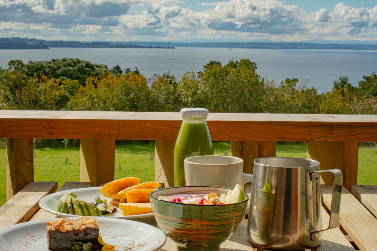 Cənubi Çilidə Llanquihue gölü mənzərəli təcrübə. Nəfəskəsici günəş doğumlarından, vulkan mənzərələrindən və rahatlığınız üçün hazırlanmış tam təchiz olunmuş məkandan zövq alın: qurman mətbəxi, hovuz, idman zalı, barbekü sahəsi və daha çoxu. Göl və şəhər mərkəzindən bir neçə addımlıq məsafədə, eksklüziv və sakit məhəllədə. Ailələr, cütlüklər və ya tək səyahətçilər üçün mükəmməldir. İndi bron edin və Puerto-Varasda üslub və səmimiyyətlə əylənin!