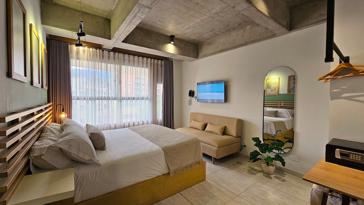 Disfruta de este Hermoso Loft en el piso 3, con linda vista a la ciudad, en el Edificio 30 Living. Esta cerca al Mall Los Molinos, Universidad de Medellin y Clinica de Medellin, a pocas cuadras del parque de Laureles donde encuentras restaurantes y bares para todos los gustos. Frente a estación de Metro plus La Palma. Terraza del último piso con jacuzzi compartido y Coworking. Recepción 24 horas, Cerradura digital, auto check in. Bienvenido a Medellín, tu hogar lejos de tu hogar !