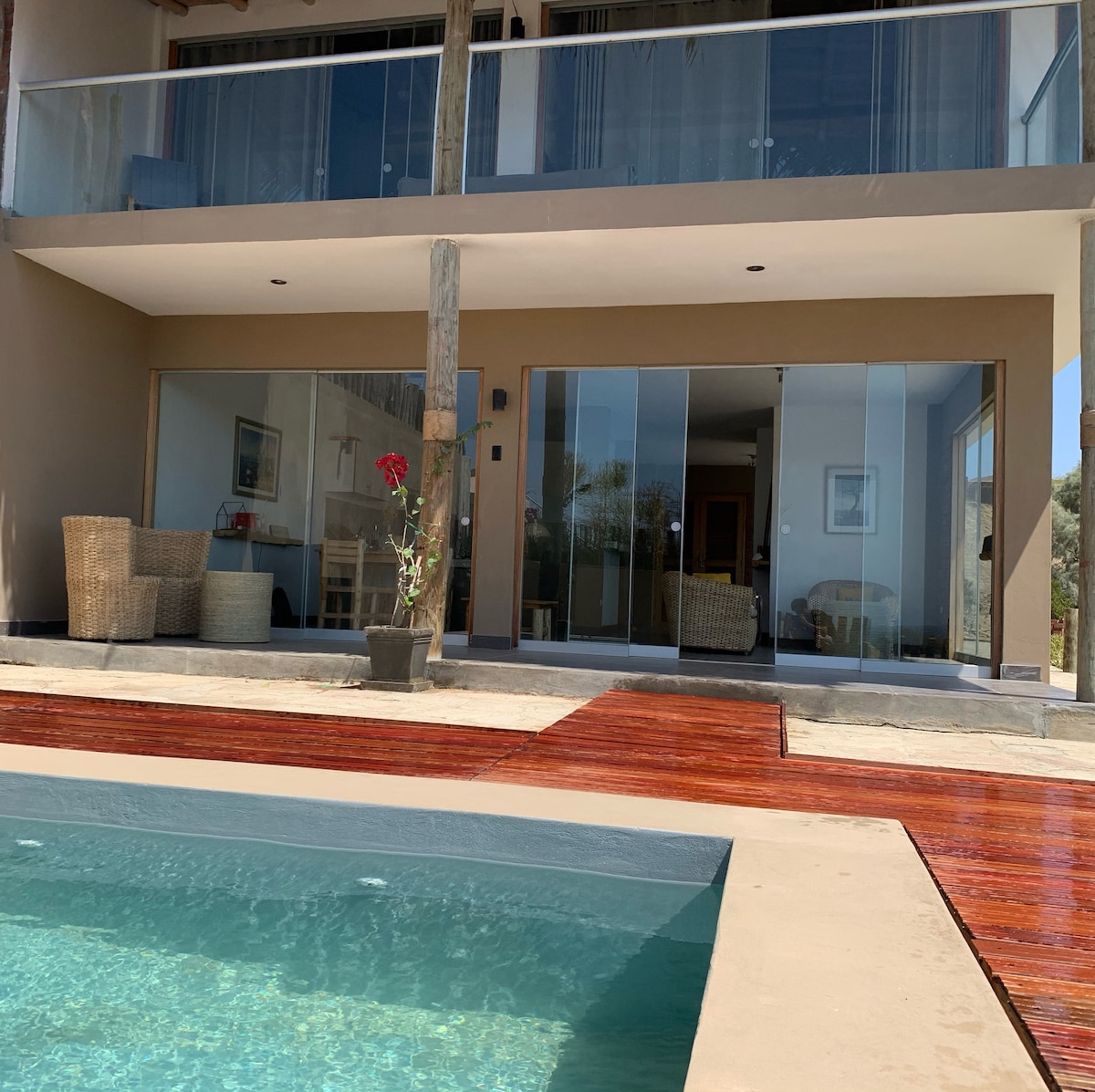 Pocitas, Máncora, Peruda çimərliyin qarşısı. Nu House təbiətin ortasında eksklüziv məkan təklif edir. Çimərliyə birbaşa giriş imkanı ilə. Maksimum tutum 6 nəfər. Evdə çarpayısı, hamam otağı və ayrıca terrası olan əsas otaq var. İkinci və üçüncü yataq otaqlarında da çarpayı var. Kral çarpayısını 2-ci və 3-cü otaqlarda iki 1,5 nəfərlik çarpayı ilə əvəz etmək üçün sorğu göndərə bilərsiniz. Tam mətbəx, qonaq otağı, yemək otağı, hovuzu və barı olan terras. Düşərgə ərazisi