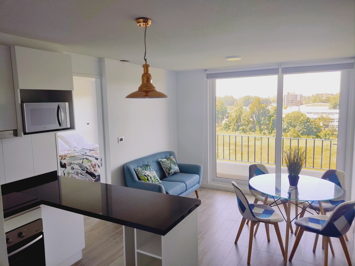 Disfruta de la funcionalidad de este departamento nuevo, central, tranquilo, cercano a los mejores restaurantes de Isla Teja, muy bien equipado y cómodo, sin estacionamiento. Puedes acceder caminando a: - Mercado Fluvial 10 min - Casino Dreams 10 min - Plaza de la República 10 min - Jardín Botánico UACH 5 min - Parque Saval 15 min - Museo Naval Submarino O’brien 15 min A 2 cuadras de locomoción para acceder a Cervecería Kunstmann, Feria Costumbrista de Niebla y costa Valdiviana.