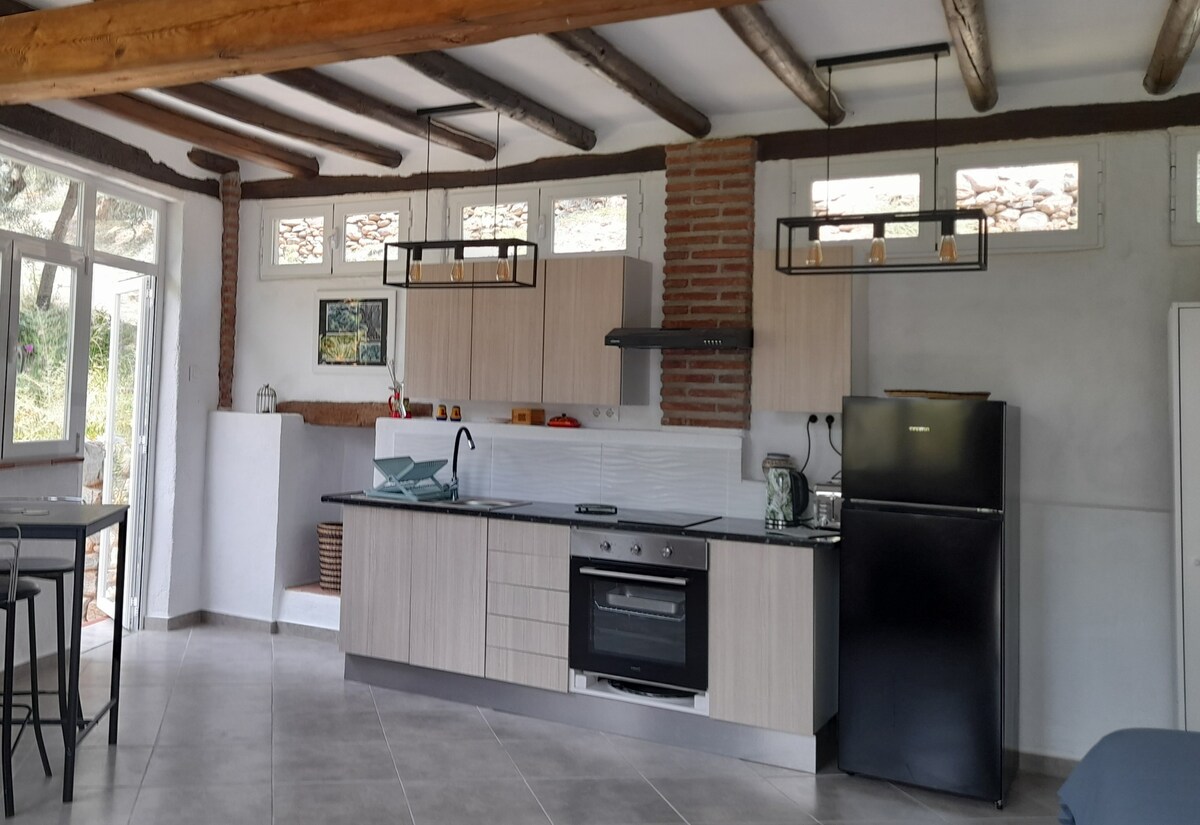 Apartamento Rural de obra nueva del 2020 situado en Capileira (Alpujarra granadina), dispone de un salón cocina, cuarto de baño, dormitorio con cama de matrimonio y una terraza independiente con vistas. Entre senderos esta diseñado con un estilo rústico y acogedor propiciando la buena estancia de los huéspedes. Totalmente equipados para una estancia cómoda y agradable.
