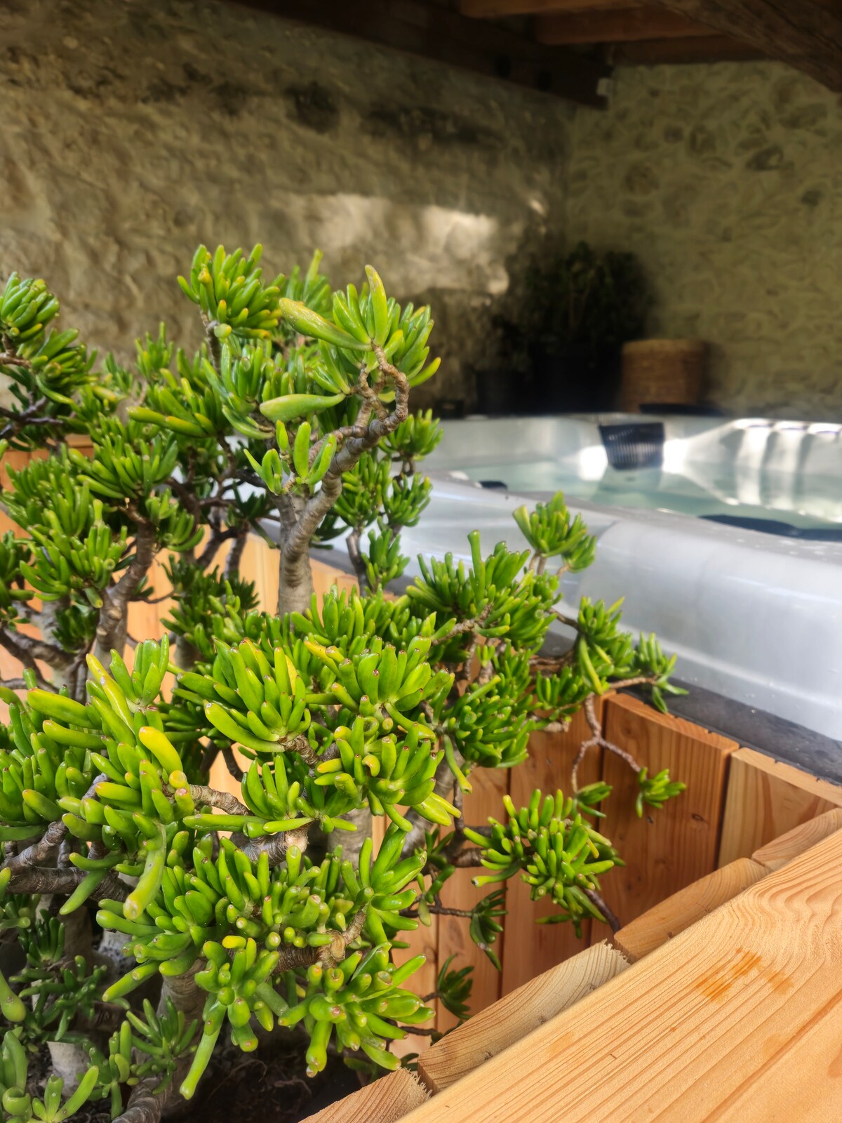 Özünüzü unudulmaz bir tətilə hədiyyə edin: özəl örtülü spa olan cazibədar kottecdə rifah və dünyadan uzaqlaşmaqla qonaqlayın. Sakitlik və orijinallıq axtaran cütlüklər üçün ideal olan bu təbiət mənzərəli otaq sizi yavaşlamağa, nəfəs almağa və hazırkı anın dadını çıxarmağa dəvət edir. Yaşıllıqlarla əhatə olunmuş ev həm səmimi, həm də səmimi atmosferdə daşın təbii gözəlliyi və ağacın istiliyi ilə öz xarakterini göstərir.