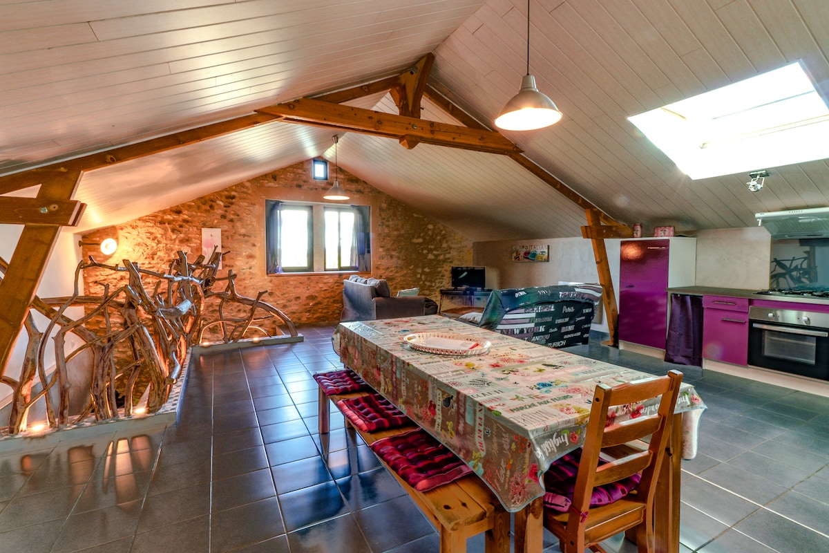 "La Grange du Garrit" ə xoş gəlmisiniz Villefranche du Périgord yaxınlığında, kənddə yerləşən Dordoyda 2 səviyyədə tamamilə bərpa edilmiş köhnə anbarda (220 m² yaşayış) qalacaqsınız. Rahatlayın, Sağlamlıq, Sülh və Təbiət. Burada sizi nə gözləyir! Bağdan, 34 ° C-yə qədər qızdırılan böyük XÜSUSİ cakuzisi olan SPA sahəsindən və imkanlardan zövq alacaqsınız.
