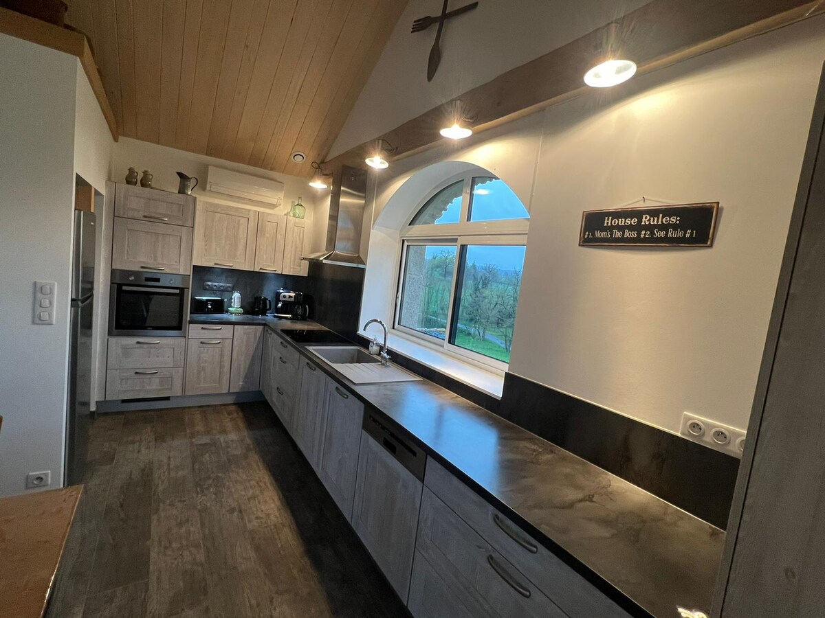 When the old barn becomes a country house, blending modernity with rustic charm... Located in the heart of the Regional Natural Park of the Causses, come and discover Aveyron and Lot from this house nestled in a small hamlet, 20 km from Villefranche de Rouergue and 7 km from Cajarc. This charming barn, surrounded by nature on a wooded plot of 6000m2, offers all the comfort you desire. During June and July, week-long stays (Saturday to Saturday) are preferred.
