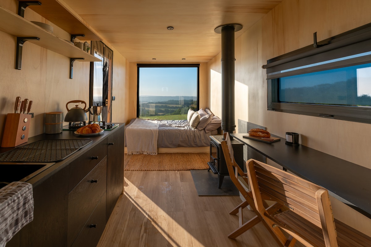 Featured in The Guardian and The Times Top 10 UK Off-Grid Stays. Wake to sunrise over the South Downs in this secluded hilltop off-grid cabin overlooking the whole of the South Downs National park. Experience total serenity under star-filled skies with the warmth of a wood-burning stove enhancing the peaceful ambiance. Our off-grid cabin offers tranquility whilst still being close to cosy pubs, historic towns and scenic walks. Dog Friendly. It’s the perfect place to disconnect and recharge.