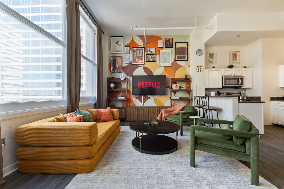 Şəhər mənzərəli bu geniş 6-cı mərtəbə Müasir Üslublu Mənzil bütün imkanlarla tam təchiz olunub: - Hər qonaq arasında peşəkar şəkildə təmizlənib - Təmassız öz-özünə giriş - Yerində pulsuz qaraj parkinqi (Bizimlə bir günlük bron üçün 44 dollar qənaət edin) - Bütün şəhər mərkəzindən gəzinti məsafəsi təklif edilməlidir - İndianapolis Skywalk-a qoşuldu - Pull-Out queen divan çarpayı - Yığılmış mətbəx - 60" Roku Smart TV - Yataq otağında Roku TV - Stul ilə iş sahəsi - Mənzildə paltaryuyan/qurudan maşın - 500+ Wİ-Fİ - 24/7 idman zalı