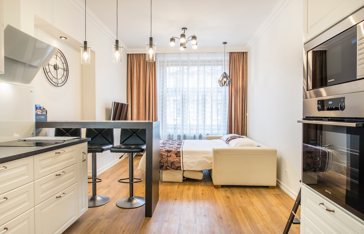 This gorgeous studio apartment is a great place for your stay in Riga! It is located in the best possible location, in a corner of the Old Town. Staying here means being just a few moments away from the best cafes, bars, restaurants, and sights Riga has to offer. It's a perfect place to relax and recharge or do some work if needed. It's perfect for a couple or a single traveler that enjoys great design and comfort. Let us know if you've got any questions. Welcome! :)