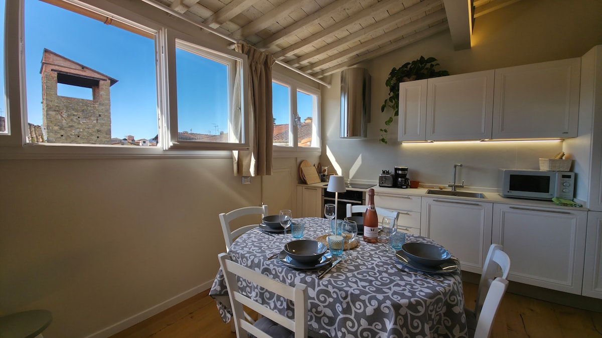 Tarixi binada (1600), Lucca-nın qırmızı damlarının gözəl mənzərəsi olan terras. Dizaynerin təmir etdiyi, 3-cü mərtəbədə yerləşən, qonaqlamanızı unudulmaz və isti etmək üçün bütün lazımi imkanlara malikdir. Lucca-nın tarixi mərkəzində, bütün turistik yerlərə yaxın, sakit və səs-küylü bir ərazidə yerləşir; Lucca-nın bütün yerlərinə bir neçə addımda çatmaq üçün mükəmməl baza. Lusiya sizi mükəmməl şəkildə dəstəkləyəcək xüsusi ev sahibidir.!
