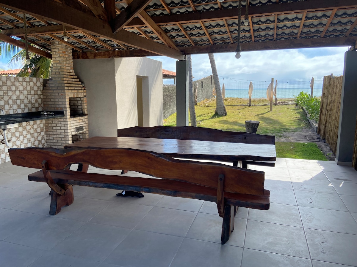 O bangalô 128 é um espaço rústico, tranquilo e arborizado, com um toque praieiro, ideal para passar dias de descanso em família. A área gourmet é ampla e dispõe de mesa para 10 pessoas, cervejeira, churrasqueira, forno de pizza e redes. Está em uma localização privilegiada, perto da piscina e do acesso ao mar! O condomínio tem uma ótima estrutura de lazer para crianças (campo, fazendinha, piscina ampla, quadra de vôlei e beach tênis) e acesso direto à praia, além de segurança e portaria 24hrs.