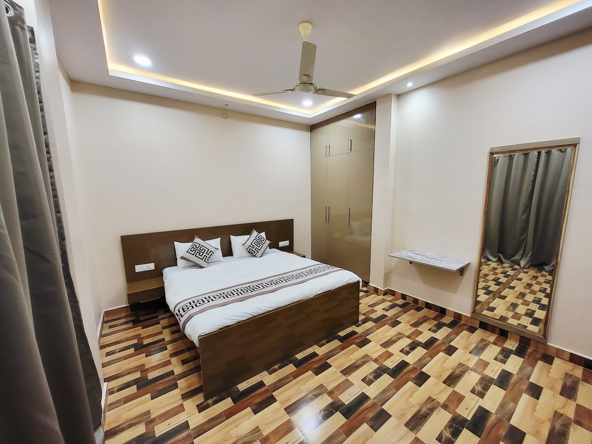 Welcome to my cozy and modern stay at Omaxe Hajratganj - a perfect blend of comfort, elegance, and city charm. The room features a clean, modern design with smooth lighting.