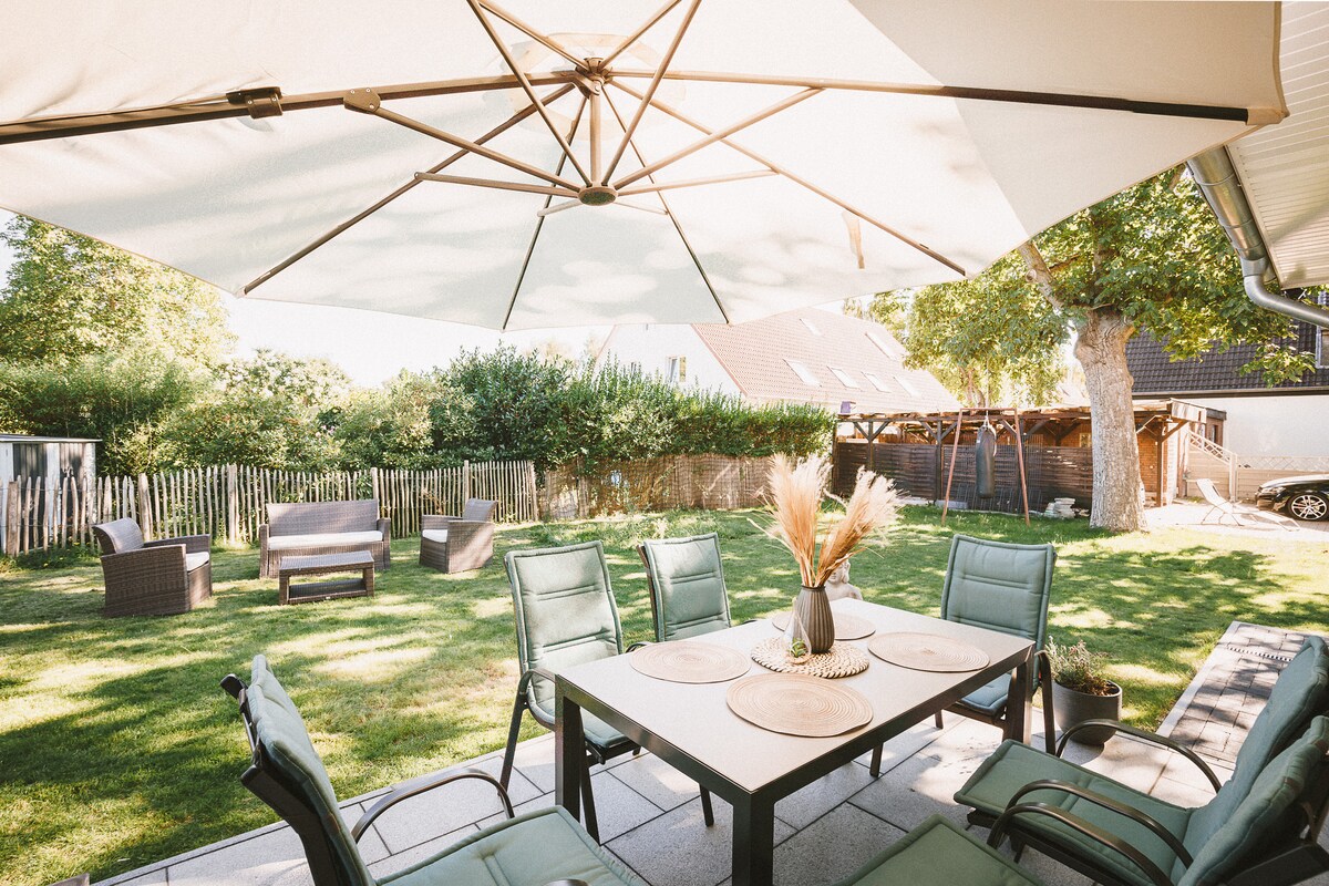 Ratzeburgerdən çox da uzaq olmayan kənd yerində, tarlaların və yaxınlıqdakı meşənin ortasında xüsusi girişi olan mənzildə (90 milyon) 4 nəfərə qədər adam qala bilər. Parlaq otaqlar masa, stul və salonları olan cəlbedici, cənub terrası (60 milyon) və təklifi tamamlayan kiçik bir bağdır. Çarpayı ölçüləri (sm) 180x200 və 160x200. Buradan gözəl ətrafı araşdıra bilərsiniz. Velosipedlər mövcuddur (fotolara baxın). Digər: Razılaşma yolu ilə Paltaryuyan/qurudan hər biri € 5,-