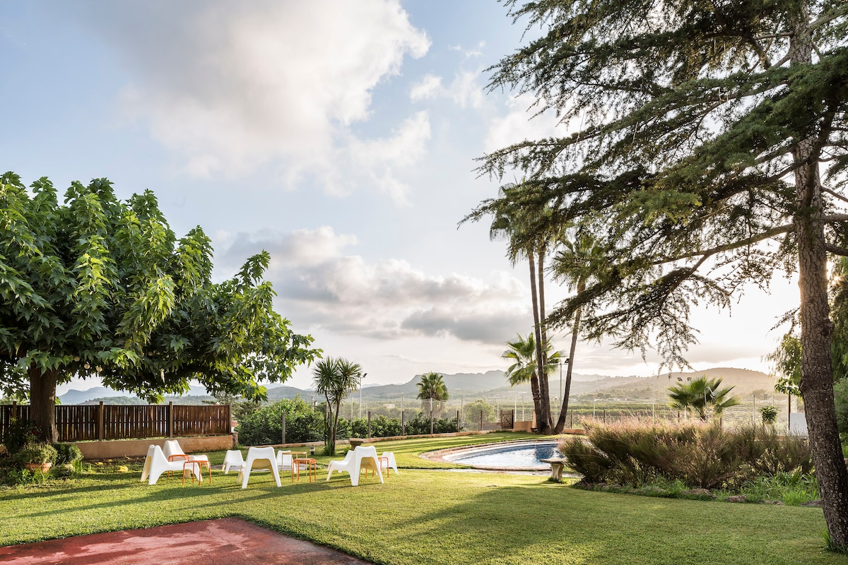 Bu klassik ispan ferma evinin füsunkarlığını hiss edin. ★★★ Dağlarda zeytun ağacları, karob ağacları, badam ağacları, limon ağacları, kakti ilə əhatə olunmuş səmimi bir məkan. Dağların ortasında sakit bir mühit. Masía La Paz hovuz, barbekü, barbekü, bağlar və tarixi neft dəyirmanı olan rustik 25 000 metrlik mülkdür. Biz fermada yaşayırıq, lakin məxfilik və sakitlik təklif edirik, evlər tamamilə müstəqildir, həmçinin soyuq sahələr, terraslar və hovuzdur.