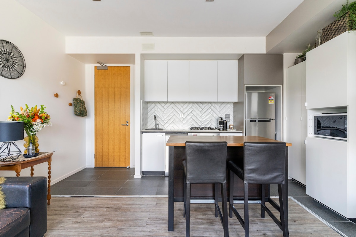 Nəfəskəsici şəhər mənzərələri ilə mənzilimə xoş gəlmisiniz. St Kilda, Fitzroy küçəsinin mərkəzində yerləşən bu şəhər vahəsi tək macəraçılar və ya cütlüklər üçün rahat qonaqlama təklif edir. İçəri daxil olarkən yaxşı təchiz olunmuş mətbəxdən və həm 2 nəfərlik, həm 3 nəfərlik divanı, həm də 75 düymlük televizoru olan qonaq otağından ehtiyacınız olan hər şeyi tapa bilərsiniz. Əsas yataq otağında çarpayınızdan gözoxşayan şəhər mənzərəsinə imkan verən şüşə pəncərə divarı var. Yumşaq işıqlandırma və minimalist dizaynı ilə yaxşı istirahət edəcəksiniz.