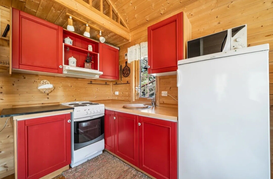 Enjoy peaceful countryside living in our cozy guesthouse. This 1920s home is full of soul and character, with charming vintage details, set in a majestic landscape. Relax in the large garden with a seating area and the option for a fire pit, enjoy the beach by Rusdalsvannet just minutes away, or explore beautiful hiking trails in the surrounding nature. On the farm, you’ll find cows and horses to admire. The interior has recently undergone cosmetic updates, making the house feel inviting.