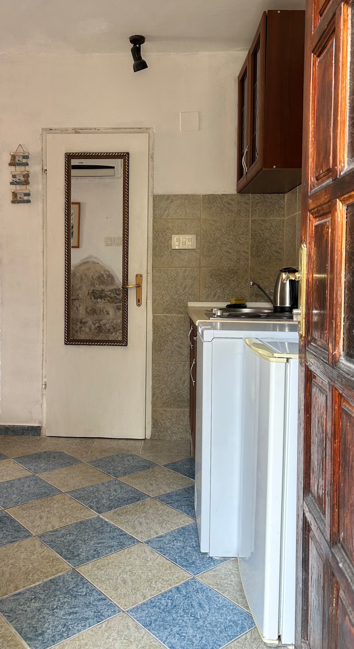 Kotorun mərkəzində yerləşən füsunkar mənzilə xoş gəlmisiniz. Şəxsi vahələrinizi kəşf etmək üçün pilləkənlərlə küçədən qalxın. Şəhərin canlı enerjisindən sadəcə bir daş atın. Daxil olduqdan sonra sizi zəriflikdə dincəlməyə dəvət edən mürəkkəb oymalar və dəbdəbəli yataq dəstləri ilə bəzədilmiş gözəl antik kral çarpayısının rejimli olmasından zövq alın. Kotor Old Town-un füsunkar damlarının və Boka Körfəzinin sularının panoramik mənzərəsi məkanı təbii işıq və gözəl mənzərəsi ilə heyran edir.