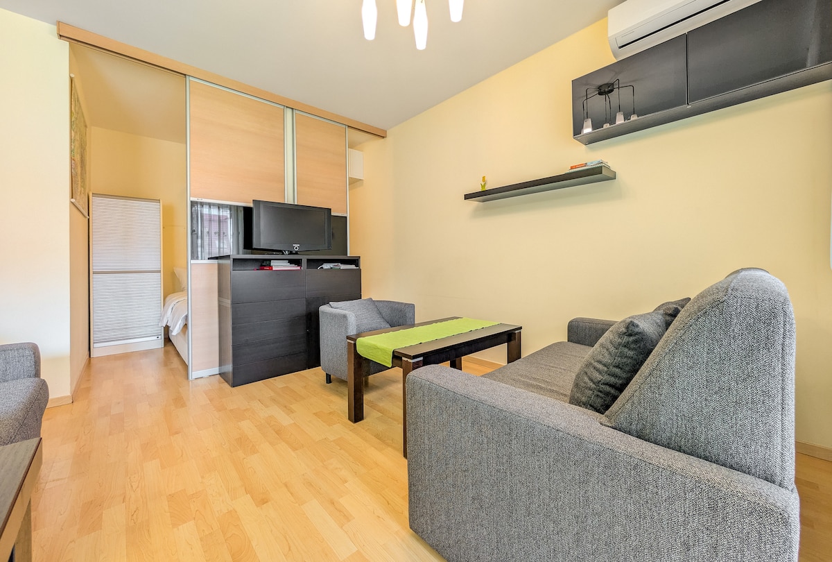 A modern apartment, fully equipped for stays of any duration. Close to the city centre and well-communicated with any location in Wroclaw. Restaurants, shops, fitness clubs and a local commercial centre within walking distance. The apartment features air conditioning, Wi-Fi, dishwasher, washing machine, cutlery and crockery, and ample space for work and leisure. Additionally, the well-equipped kitchen is a foodie's dream come true. The apartment is ideal for 1-2 adults.