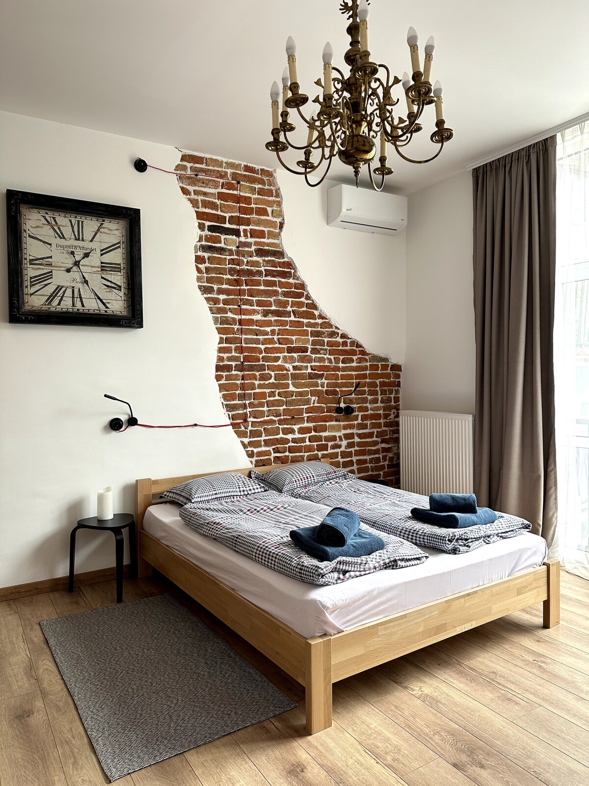 Mərkəzi küçənin sakit həyətində ideal mövqe – yüz metrlik. Ratuşa – 5 dəqiqəlik piyada məsafədə. Kafe - Desyatka, Delikacia, Urban Space, Familiya - 2 dəqiqəyə qədər. Hər otaqda ortopedik queen-size döşəyi olan çarpayı, Android oyunları olan smart TV, kondisioner, Wi-Fi, Netflix, qəhvə masası var. Lazım gələrsə, masa var. Mətbəxdə çaydan, soyuducu, qaz sobası, qab-qacaq və içməli su var. Hər üç otaqda otağın yan tərəfində dəhlizdə ümumi duş və tualet var. Cəmi 9 otaq
