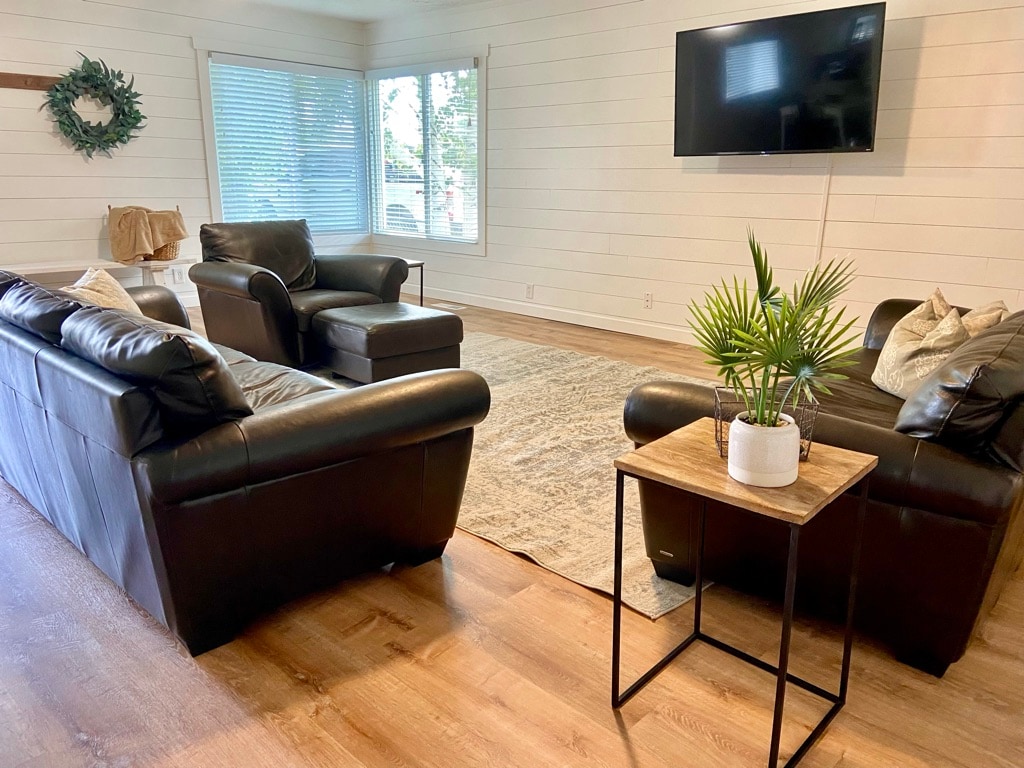 Experience the perfect blend of rustic beauty and comfort here! Relax on the spacious front and back porches, where you’ll enjoy stunning 360-degree views of lush plants and local wildlife. While you’re surrounded by nature, you’ll still have all the comforts of home, including hot showers, cozy beds, and welcoming living spaces. Designed for gathering, the lodge offers room for food, family, and friends. Two separate living areas, plenty of space to share meals, games, or unwind with a movie.