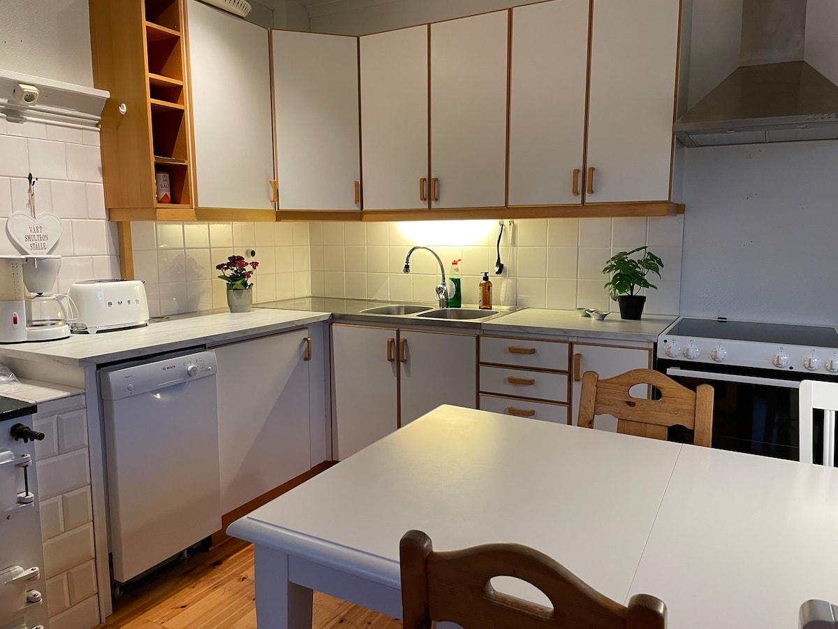 Bizimlə, bir çox gözəl gəzinti yolları olan Pinneviksbadet və Stångehuvud Təbiət Qoruğuna yaxın bir sakit bir ərazidə yaşayırsınız. 400 m məsafədə Havets Hus, rahat mağazaları, kafe və restoranları olan Lysekil şəhər mərkəzinə təxminən 1 km məsafədə yerləşir. Yarı təmirli evdə yeni təmirdən çıxmış mənzil. İstirahət mebeli və ünsiyyət qurmaq və istirahət etmək üçün yemək otağı olan böyük sevimli çoxmərtəbəli göyərtə Qabyuyan maşınla yaxşı təchiz olunmuş mətbəx, 3 yataq otağında 6 çarpayı + zalda divan çarpayısı, duş və paltaryuyan maşını olan vanna otağı, yuxarı hissədə vc Yataq dəstləri, dəsmallar, sabunlar və şampunlar mövcuddur.