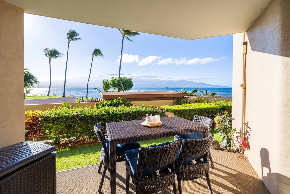 Enjoy a Romantic yet affordable BeachFront, Ground floor condo with a partial ocean view from the Lanai. NOT ACROSS THE STREET FROM THE OCEAN! Located on gorgeous Sugar Beach, Maalaea- the LONGEST WALKING BEACH on the entire island. Humpback Whales (Nov-April) and turtles are often seen in the waters. On a a quiet, non-through road, this is like your own little neighborhood paradise! GE-210-827-7760-01 TA-210-827-7760-01 General Excise/Transient Tax