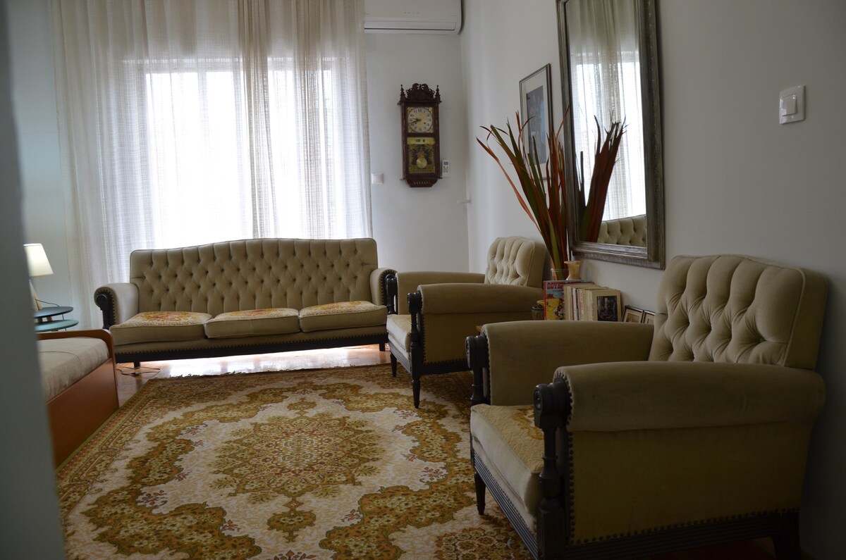 A beautiful, spacy, light rooftop apartment with views of the sea and mountain. 3 minutes from a blue star beach and a 5 star hotel. It has descent furniture, tableware, fast WIFI, TV channels from all over the world, HIFI system, air-conditioning, gas heathing, private parking, three balconies, elevator, intercom and a big walk-in closet. Close to Gerovassiliou (wine house), airport (15min), boat to the city centre in summer (45min). For a small fee we can pick you up from the airport.