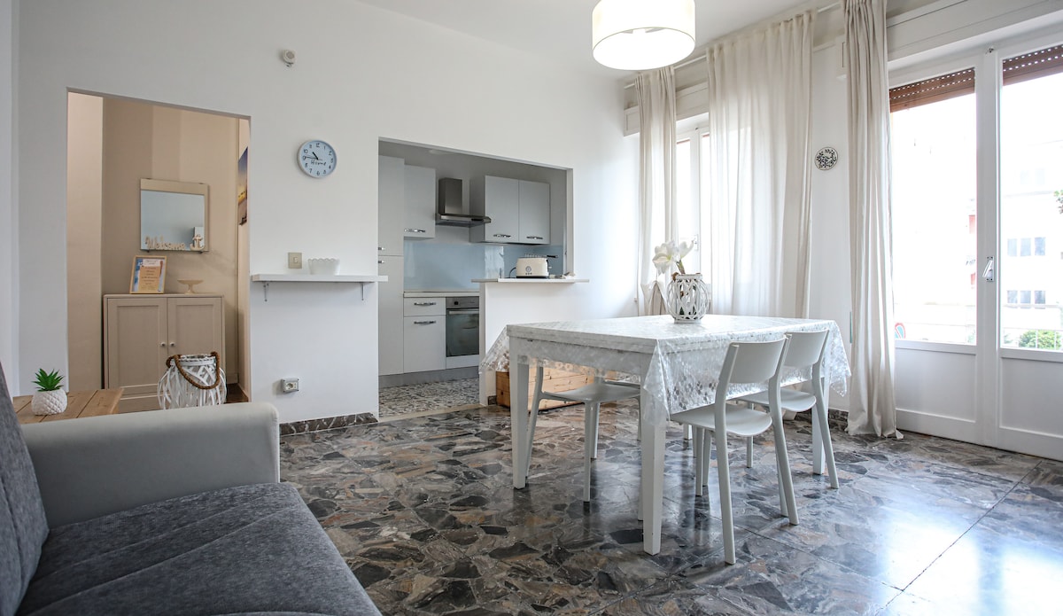 Fully air-conditioned with a hydromassage shower and 2 bikes available for your use! A 3-minute walk from both the public and private beaches. Perfect for couples and families looking for a well-kept and comfortable accommodation, well-connected to explore the Conero Riviera and its villages. The house is located next to 2 large green areas overlooking the Basilica of Loreto and cycle paths. The only public beach where dogs can swim is 600 meters away. Quiet area with no restricted traffic zone.