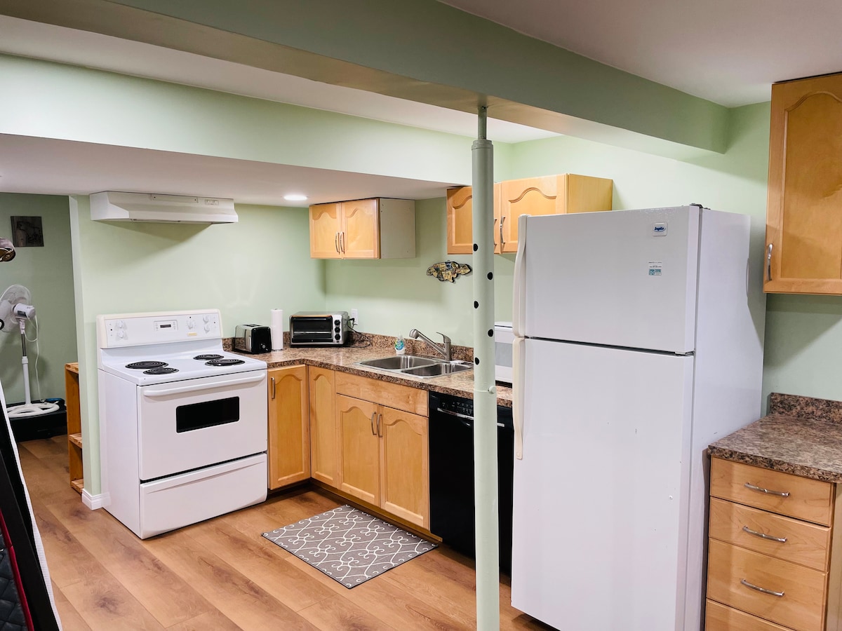 Hello 👋🏻. I have a 2 bedroom basement apartment with private entrance, available for short or long stays. Fully stocked kitchen, coffee bar, washer/dryer, full bath. It is bright, clean and quiet. Also has a massage chair to take advantage of at the end of a long day 😁 I am always available on my phone. Some things to note: -extra twin mattress available -playpen -high chair - shoes are to be removed in the entrance - no parties - no smoking or vaping - breakfast included ☕️
